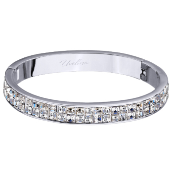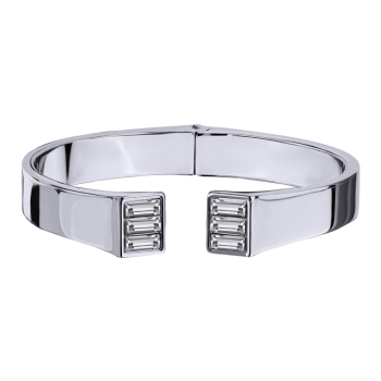 Изготовлено из ювелирного сплава на основе латуни с гальваническим покрытием родием. Изделие украшают кристаллы SW белого цвета. Ширина браслета 5мм