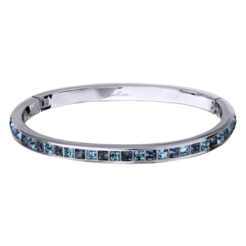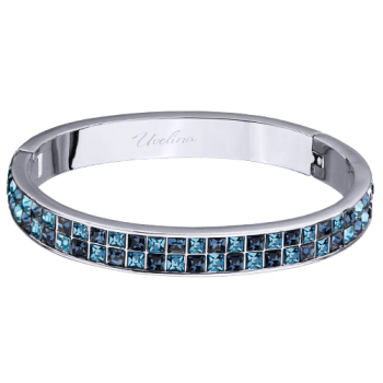 Изготовлено из ювелирного сплава на основе латуни с гальваническим покрытием родием. Изделие украшают кристаллы SW цвета джинс и аквамарин. Ширина браслета 5мм