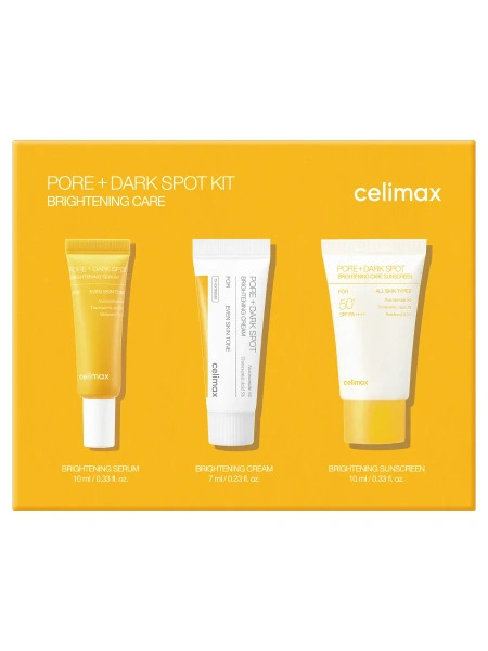 Откройте для себя набор Celimax Pore+Dark Spot Brightening Kit — комплексное решение для безупречного тона и сияния кожи, объединяющее передовые осветляющие технологии и три высокоэффективные формулы ... Показать описаниедля борьбы с пигментацией. Этот набор помогает подавить синтез меланина и устранить пигментные пятна благодаря сочетанию транексамовой кислоты и 5% ниацинамида, значительно выровнять микрорельеф и сузить поры, обеспечить глубокую гидратацию, а также восстановить защитный барьер и защитить кожу от фотостарения.