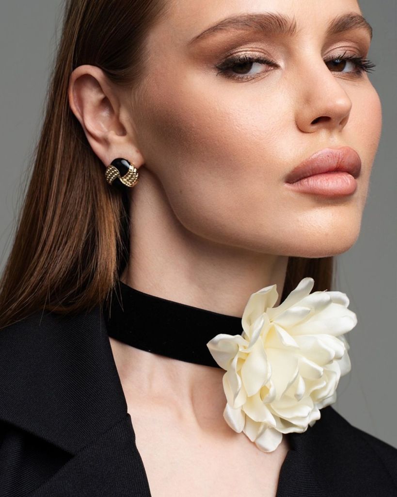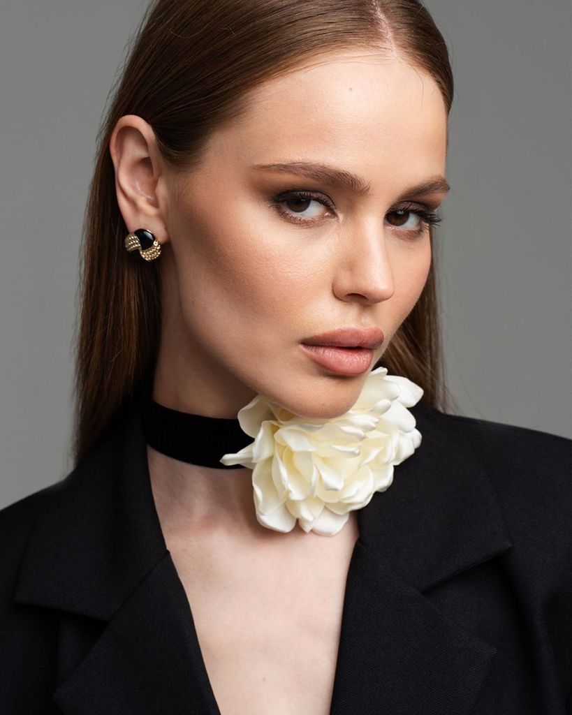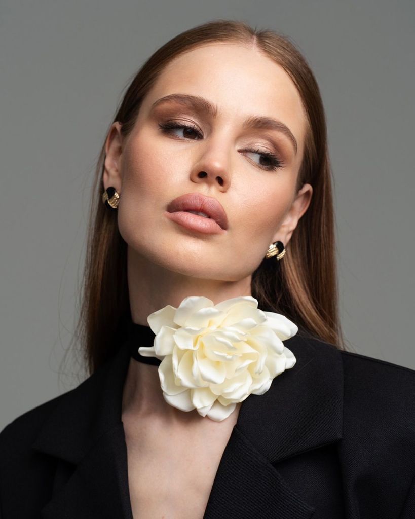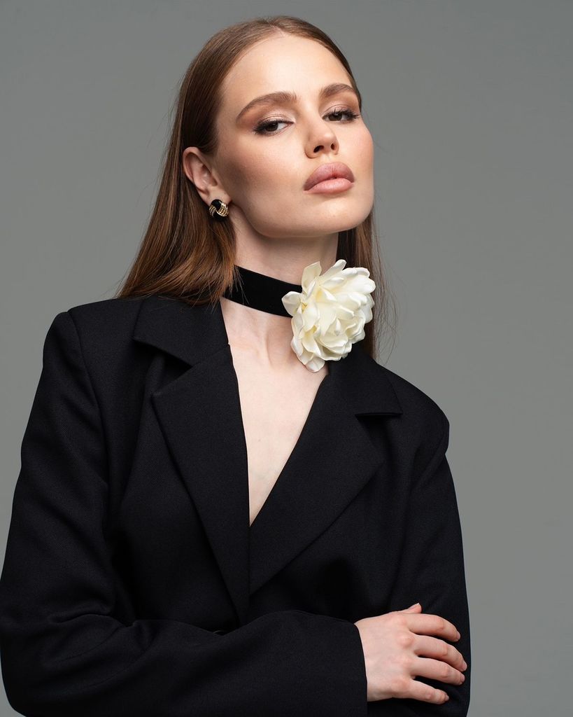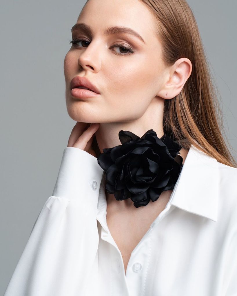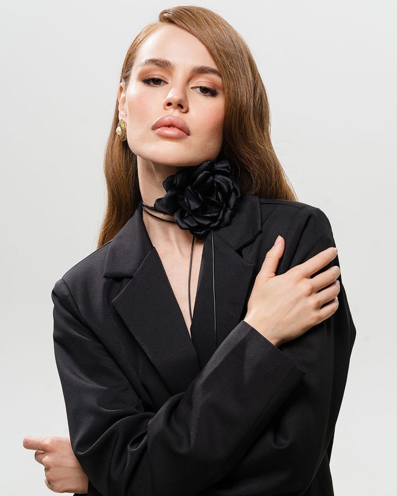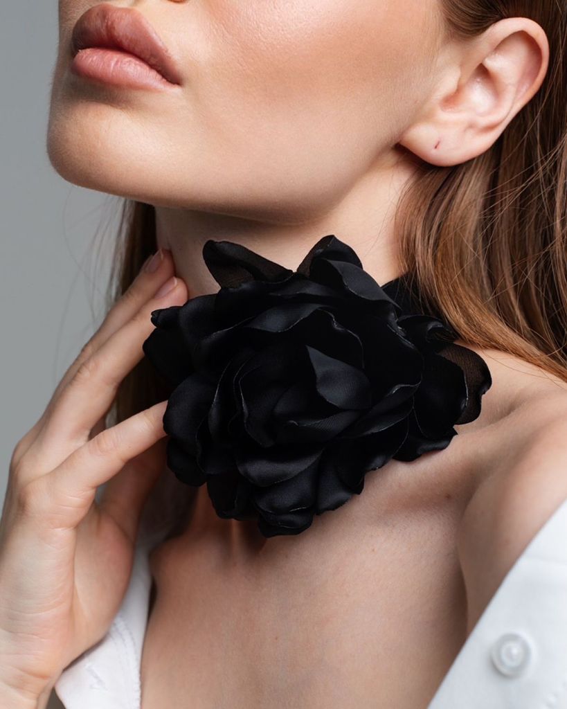 Чокер с цветком - один из самых ярких женских аксессуаров. Размер цветка 12 см в диаметре. Это невероятно нежная и красивая роза ручной работы, каждый лепесток объемный. Смотрится такое украшение роск... Показать описаниеошно. Материал устойчив к деформации и усадке, поэтому цветок не потеряет форму в процессе длительного использования. Цветок крепится к тонкому шнурку длиной 180 см, он смотрится очень стильно и изящно на шее. Такое эффектное украшение настолько изысканно, что станет актуальным дополнением для женщин, девушек, девочек подростков на выпускной в школе, вечеринку, свадьбу, фотосессию или свидание. Может украсить комплект подружки невесты на свадебном торжестве или детский тематический костюм. Трендовый чокер роза - это лучшая альтернатива скучной бижутерии, устаревшей подвеске, ожерелью или цепочке (цепи). Колье станет беспроигрышным вариантом уникального подарка на день рождения для любимой девушки, жены, подруги или сестры. Состав: 100% полиэстер