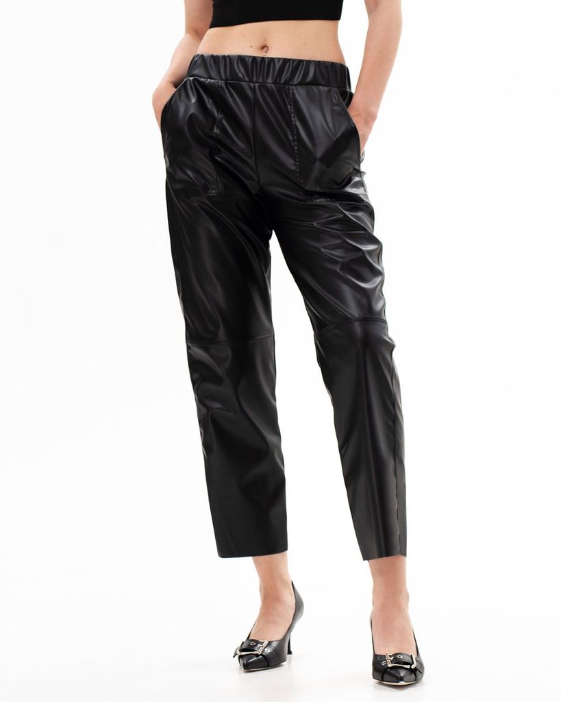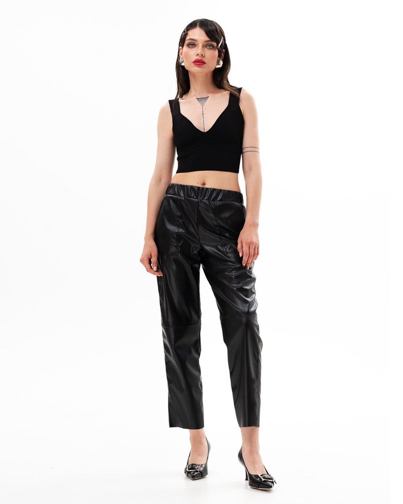 Кожаные брюки – актуальная модель сезона осень-зима. Брюки сшиты из матовой экокожи. Брюки прямого кроя премиум качества не блестят, идеально садятся и выглядят дорого. Черные брюки выполнены из прочн... Показать описаниеого материала высокого качества, вы можете быть уверены в долгой качественной носке. Высокая посадка выполнена таким образом, что хорошо скрывает недостатки и визуально стройнит. Высококачественный эластичный материал делает носку классических брюк очень комфортной. Внутренний слой - это мягкий бархатистый материал, приятный к телу. Брюки теплые не слишком узкие, так что вы с легкостью сможете поддеть утепленные леггинсы и не замерзнуть зимой. Брюки классические идеально подойдут под офисный стиль. Брюки отлично поддерживают фигуру. Брюки не растягиваются и не трескаются в мороз. Брюки офисные теплые сочетаются с разнообразными луками разных стилей: повседневный, прогулочный, кэжуал, офисный и спортивный. Брюки кожаные женские рассчитаны на демисезонную носку - осень, зиму и весну. Состав: 100% полиэстер