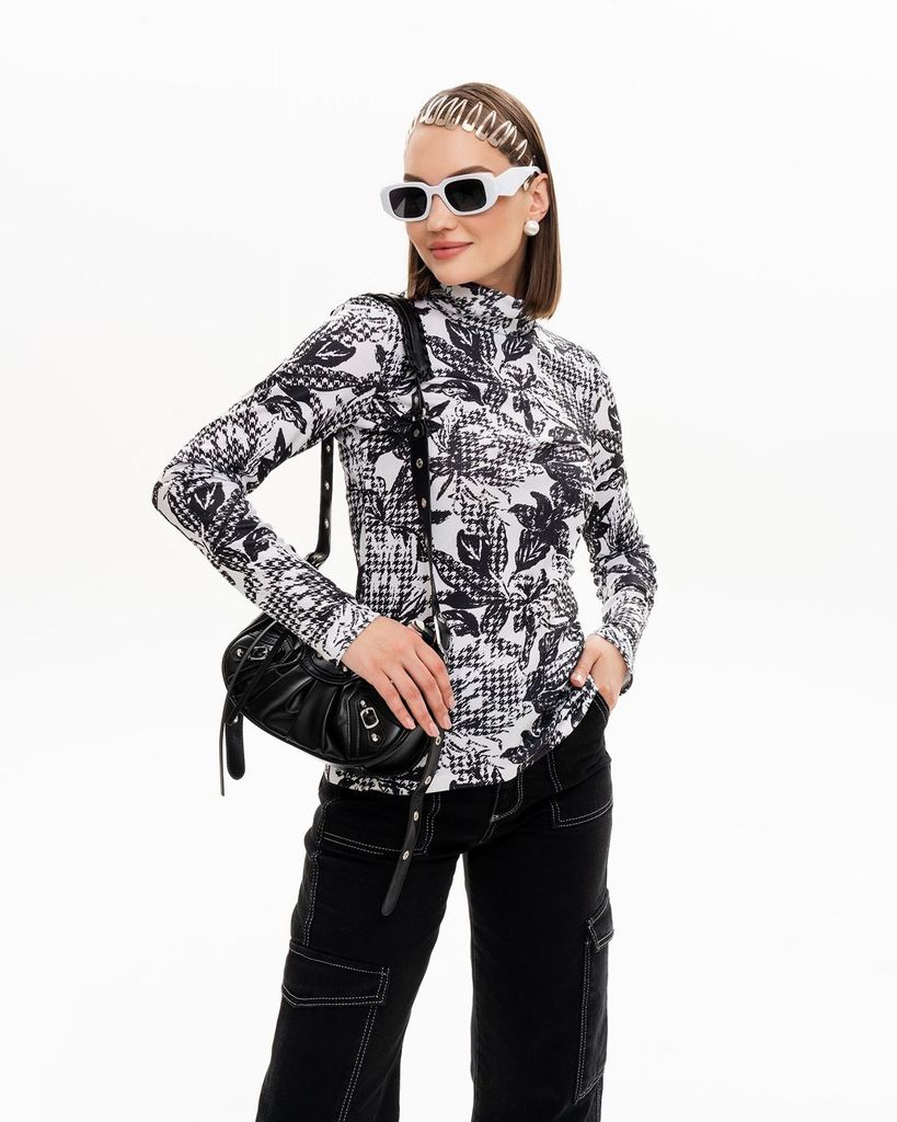 Водолазка с длинным рукавом и авторским принтом изготовлена из высококачественного трикотажа лапша. Этот эксклюзивный товар представляет собой комфортное и стильное решение для холодных времен года. Б... Показать описаниеадлон оснащен удобным воротником-стойкой и позволяет подчеркнуть индивидуальность своего обладателя. Оригинальный авторский принт добавляет неповторимости и уникальности этой водолазке. Кроме того, данная модель представлена в широком размерном ряду от 44 до 56, что позволяет каждому клиенту найти свой идеальный вариант. Водолазка подходит как для женщин, так и для девушек, позволяя всегда выглядеть стильно и модно. Не упустите возможность приобрести эту эксклюзивную водолазку с длинным рукавом и авторским принтом. Она не только гарантирует комфорт и тепло в холодные дни, но и станет настоящим украшением вашего гардероба. Покупайте прямо сейчас и наслаждайтесь качеством и стилем! Состав: 65% полиэстер, 30% вискоза, 5% спандекс