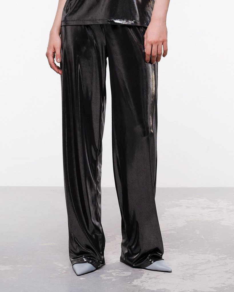 Брюки из материала "жидкий металл" – актуальная модель. Брюки сшиты из блестящей ткани Валенсия. Брюки прямого кроя премиум качества, идеально садятся и выглядят дорого. Высокая посадка выполнена таки... Показать описанием образом, что хорошо скрывает недостатки и визуально стройнит. Высококачественный эластичный материал делает носку классических брюк очень комфортной. Брюки идеально подойдут под спорт шик с кроссовками, а так же под элегантные "шпильки". Брюки сочетаются с разнообразными луками разных стилей: повседневный, прогулочный, кэжуал, офисный и спортивный. К брюкам в комплект вы можете приобрести футболку классического кроя из этой же ткани. Состав: 70% вискоза, 25% полиэстер, 5% лайкра
