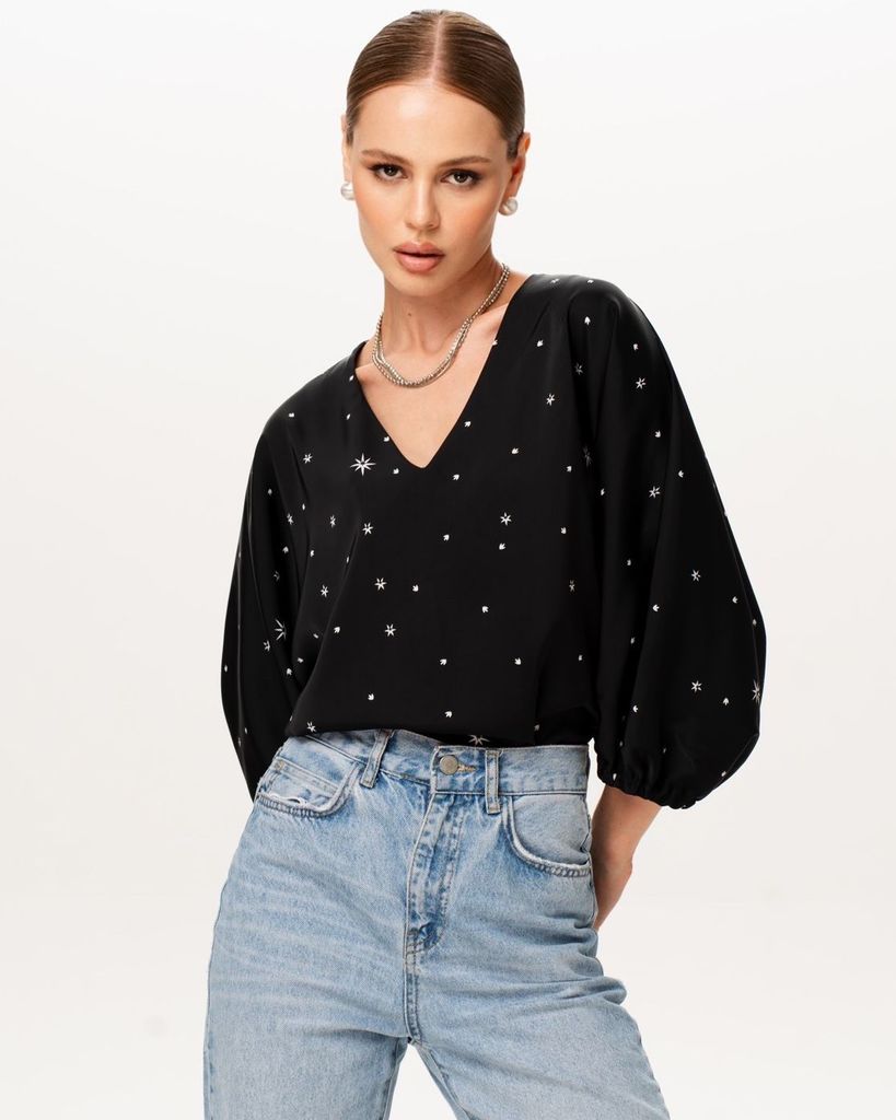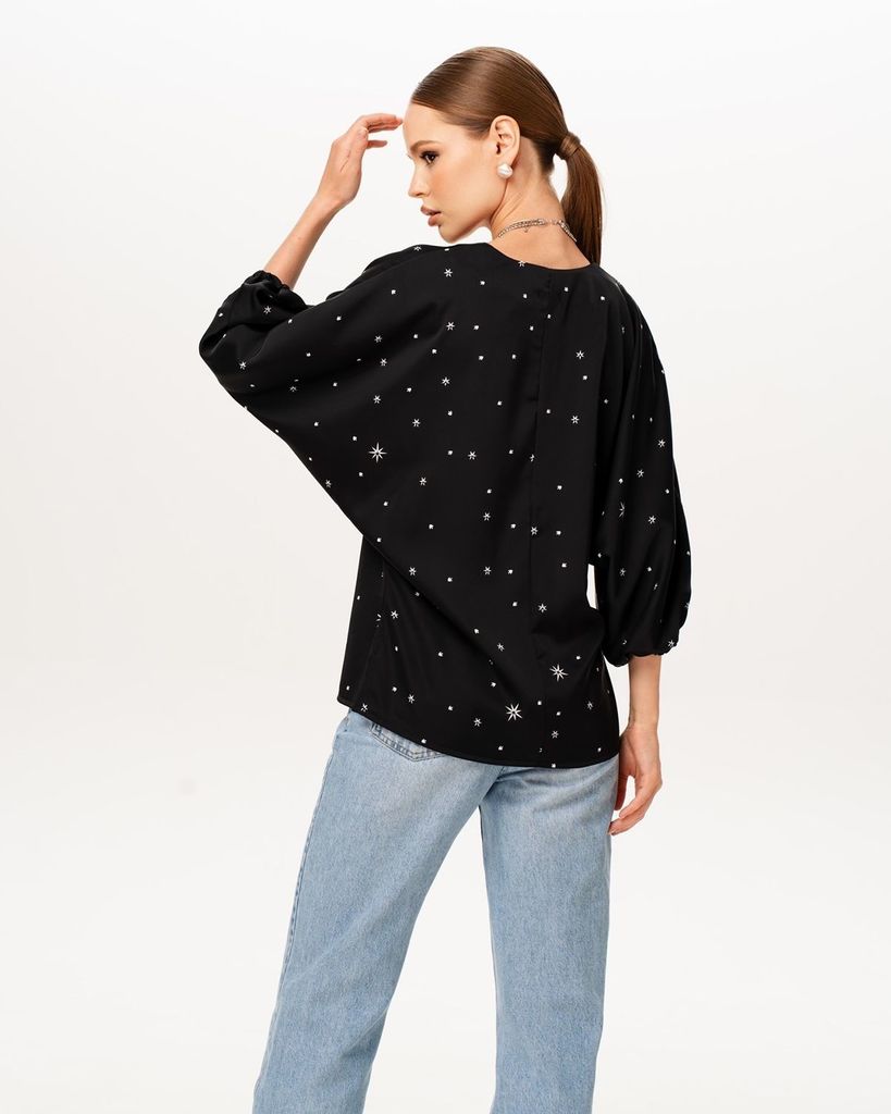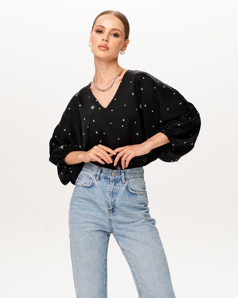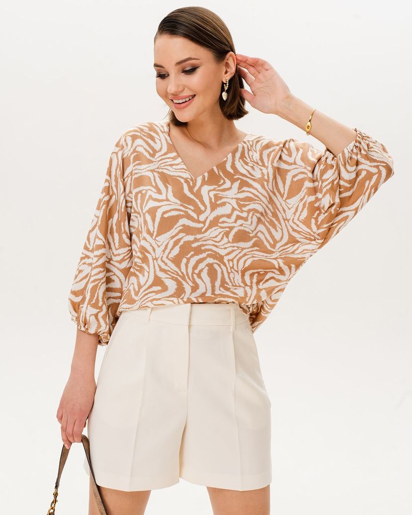 Блузка женская из одной из самых модных расцветок сезона. Материал приятен для тела, лёгкий, хорошо дышит. Кофта женская оверсайз кроя отлично подходит для создания расслабленных образов. Она комфорт... Показать описаниена из-за свободной посадки и не стесняет движения. V-образный вырез визуально удлиняет шею. Ткань красиво струится. Наше производство находится в России, качеству пошива мы уделяем отдельное внимание. Наши постоянные клиенты доверяют нам и знают, что никогда не получат торчащие нитки при заказе изделий. Выбирая подходящий размер, ориентируйтесь на таблицу в карусели. Учитывайте, что кофта женская не должна быть приталенной. Состав: 70% полиэстер, 30% вискоза
