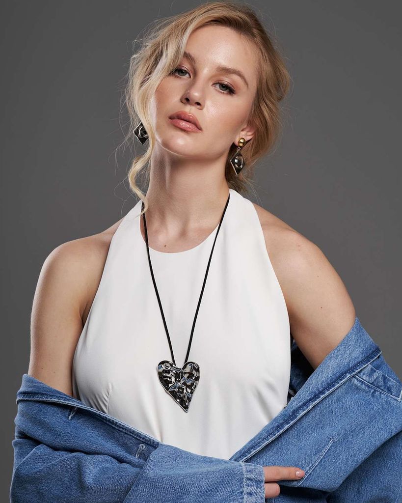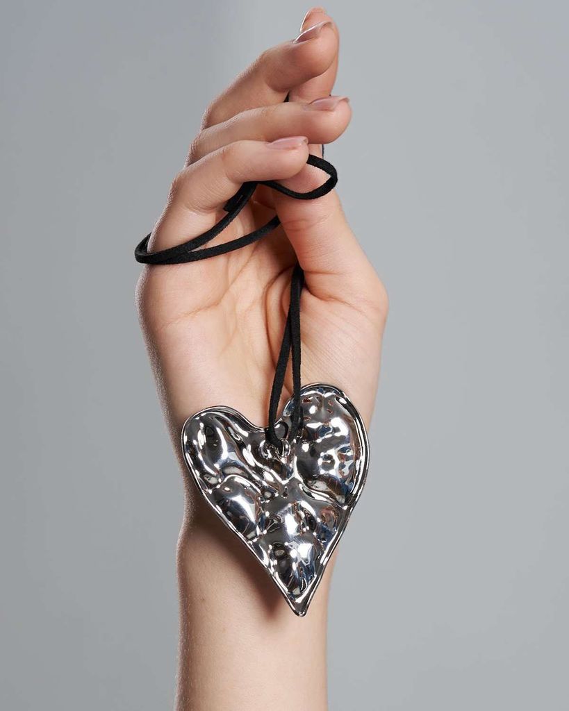 Длинное колье с крупным кулоном в виде сердца — это не просто аксессуар, а настоящее произведение искусства, которое способно дополнить любой образ. Подвеска изготовленная из премиального сплава нержа... Показать описаниевеющей стали отличается удивительной прочностью и долговечностью. Такой материал гарантирует длительный срок службы изделия и безупречный внешний вид, даже при ежедневной носке. Глянцевая поверхность кулона с эффектом расплавленного металла, привлекает взгляды, вызывая интерес к необычному рельефу изделия. Такой кулон станет великолепным акцентом в вашем образе. Современный и оригинальный дизайн делает это колье идеальным выбором для женщин, которые ценят стиль и уникальность. Размер кулона 6х7 см позволяет ему являться крупным и ярким элементом, не теряясь среди других аксессуаров. Длинный замшевый шнурок позволяет носить украшение с комфортом в любое время года. Чтобы завершить образ, вы можете собрать комплект с брошью того же дизайна и размера. Это позволит создать гармоничный и стильный аутфит. Состав: Нержавеющая сталь / Искуственная замша