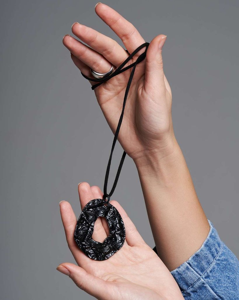 Длинное колье с круглой подвеской, выполненное из бижутерного сплава высокого качества, привлекает внимание своим современным и стильным дизайном. Текстура застывшей лавы на крупной круглой подвеске с... Показать описаниеоздаст необычный акцент в любом образе. Глянцевый серебристый металл придает изделию загадочность и элегантность, делая его универсальным аксессуаром для разных мероприятий. Длина матинэ в 45 см идеально сочетается с замшевым шнурком, обеспечивая комфортную посадку колье на шее. Это колье с крупным кулоном станет замечательным выбором для тех, кто ценит минимализм и оригинальный дизайн. Крупная круглая подвеска привлекает взгляды и придает дерзости, а также отлично смотрится как в повседневном, так и в вечернем образе. Дизайнеры, создававшие украшение, акцентировали внимание на контрасте между глянцевой поверхностью и фактурой подвески, благодаря этому, колье будет великолепно смотреться как в солнечный день, так и при искусственном освещении, добавляя изюминку любому наряду. Состав: Нержавеющая сталь / Искуственная замша
