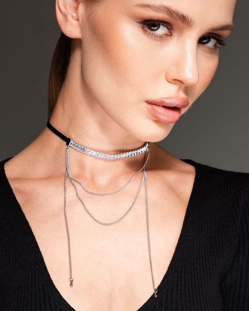 Это колье с тремя цепочками и кристаллами делает стильным любой образ, подойдет как для вечернего выхода, так и повседневной носки. Ожерелье серебряного цвета соответствует последним трендовым веяниям... Показать описание моды, но при этом не противоречит классике, не темнеет со временем. Наши украшения изготавливаются из премиального бижутерного сплава и будут годами радовать вас своим видом. (Избегайте попадания воды, парфюма и кремов на металл). Состав: Бижутерный сплав
