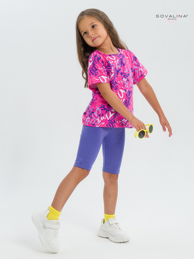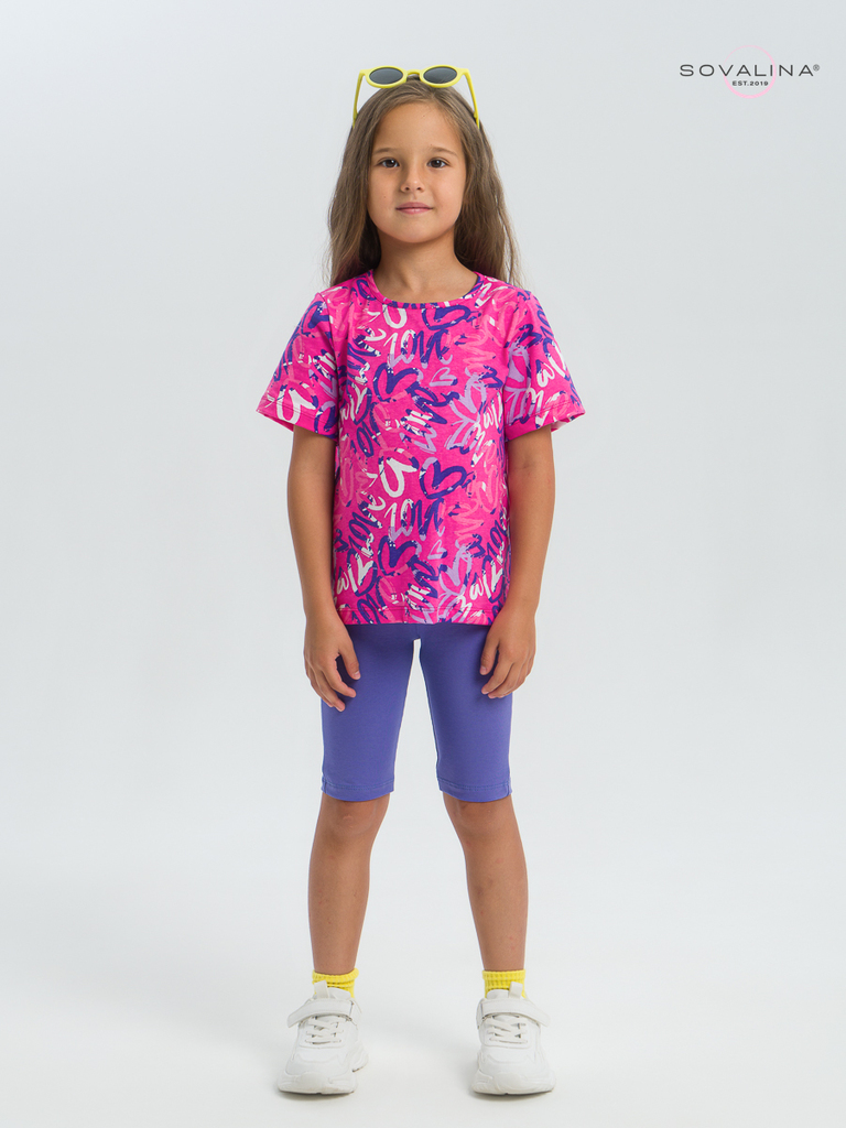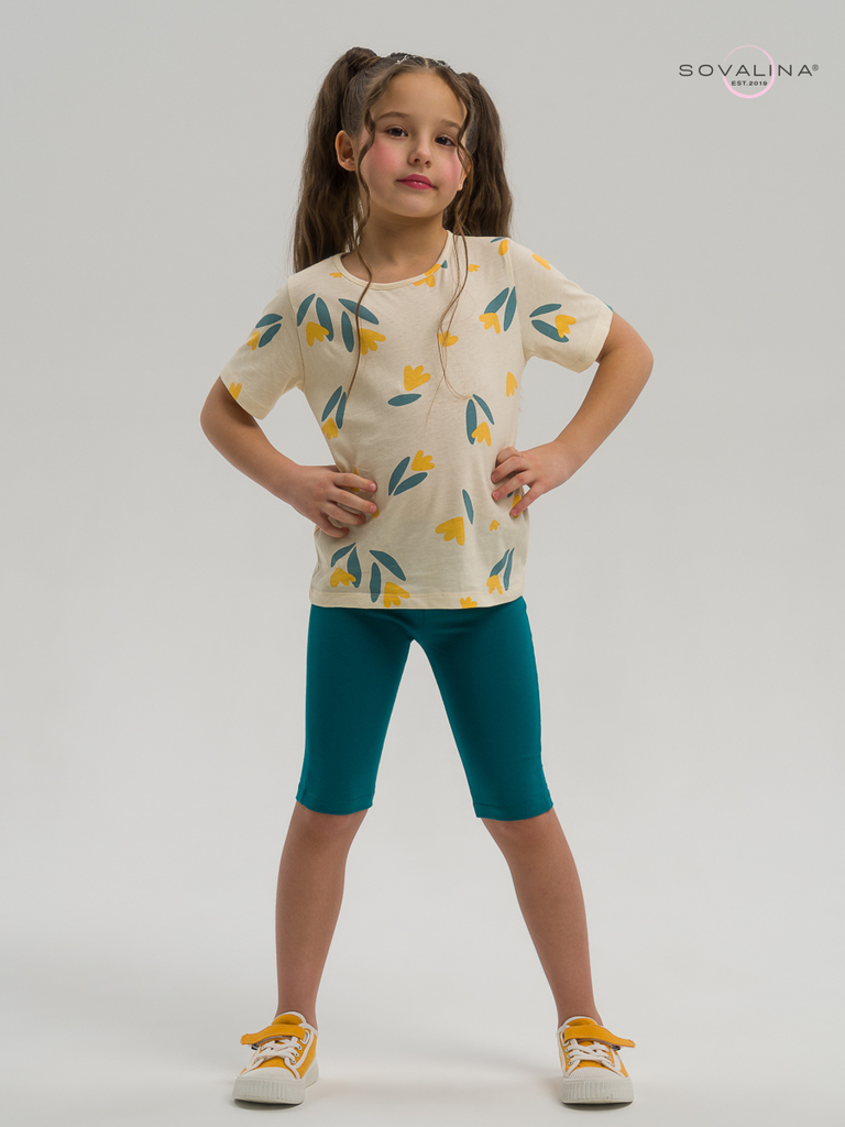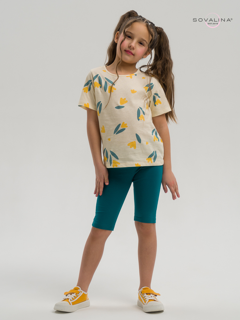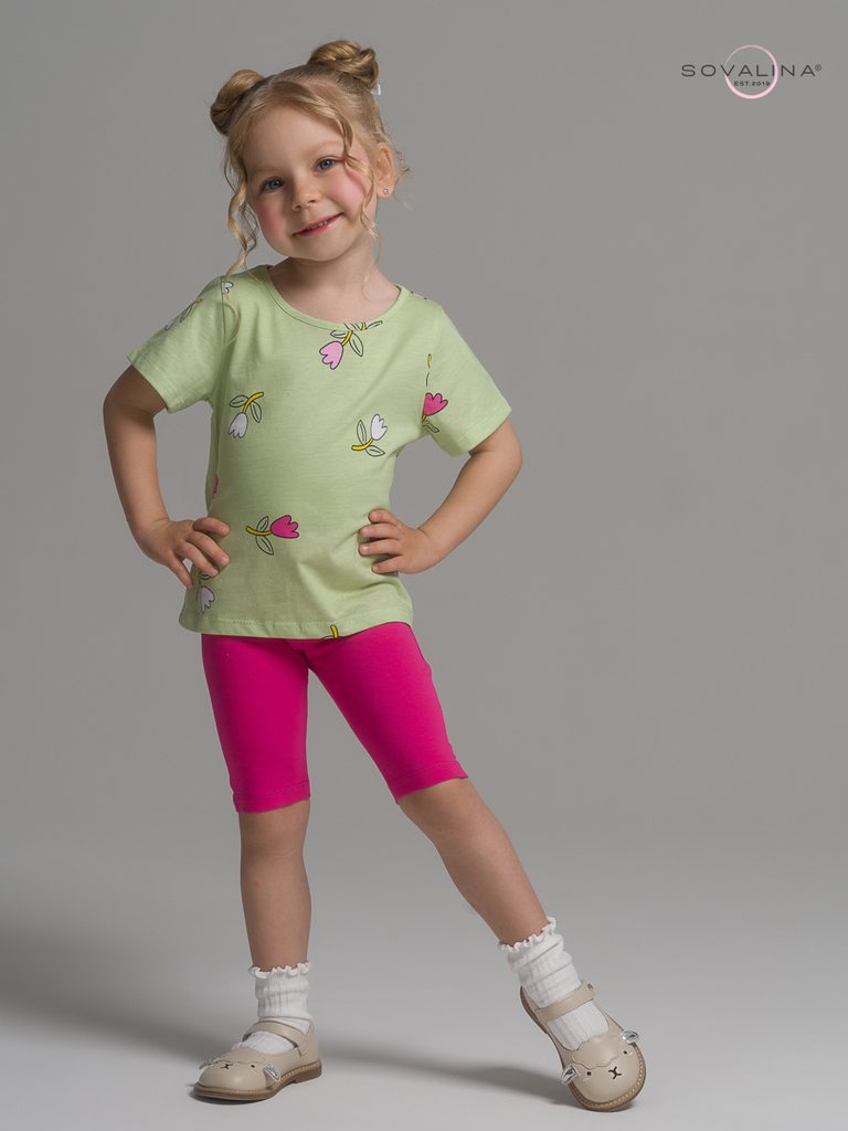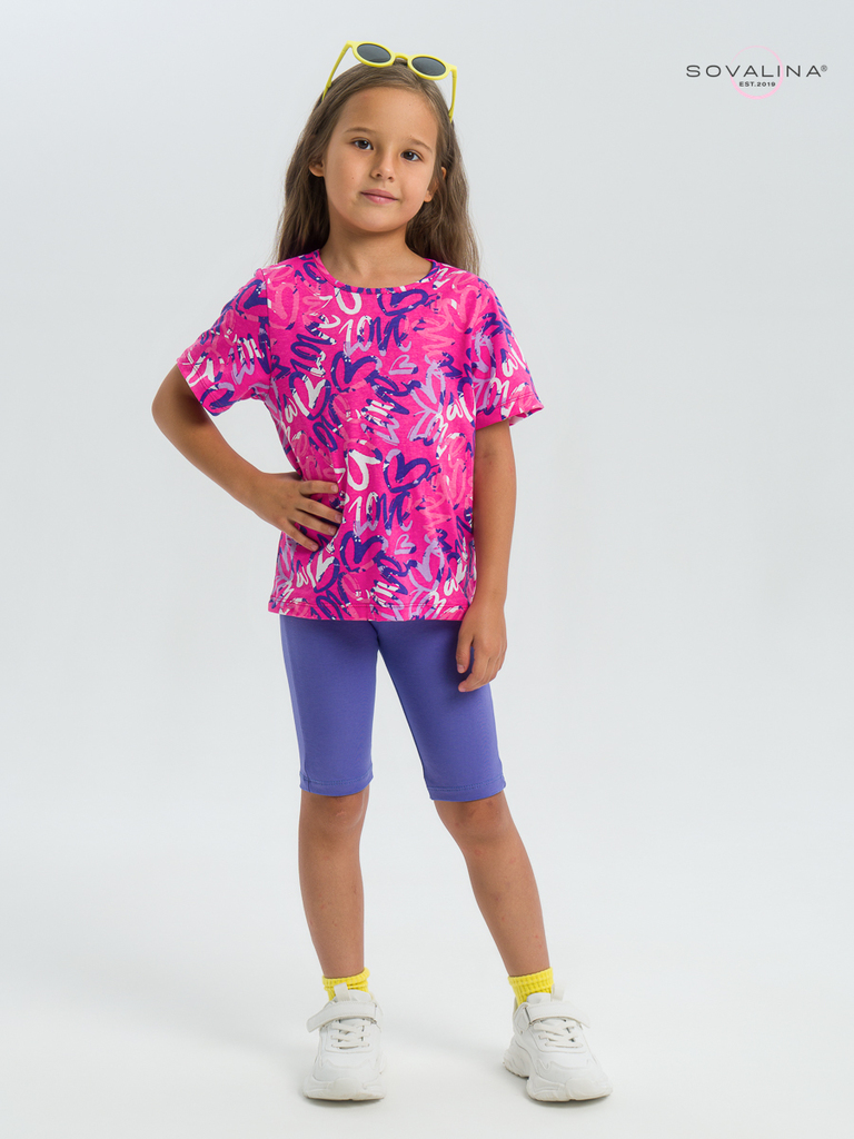 Летний хлопковый комплект для девочки бренда SOVAlina. Детский костюмчик двойка состоит из легкой и красивой футболки с цветочным принтом. Она выполнена из тонкого и прочного трикотажа, что делает ее ... Показать описаниеидеальной на каждый день в садик. Модный спортивный комплект также включает эластичные велосипедки на резинке, обеспечивающие комфортную посадку для танцев или фитнеса. Майка с короткими рукавами и модным дизайном добавляет акцент этому комплекту. Изготовлена из хлопка и обеспечивает максимальный комфорт и свободу движений, подойдет для дома. Этот тонкий и легкий комплект также подходит как форма для тренировок и физкультуры. Он идеально сидит на ребенке и обеспечивает комфорт.