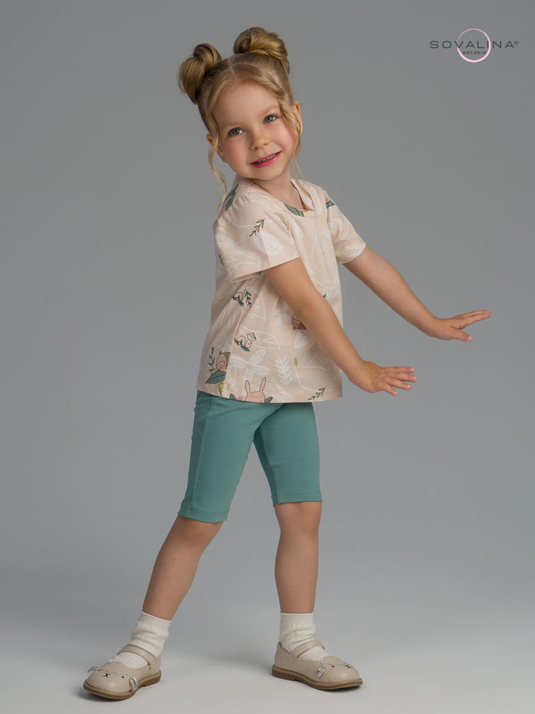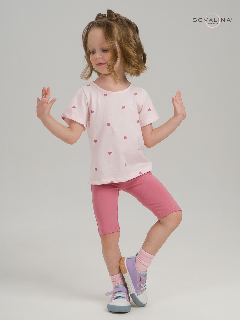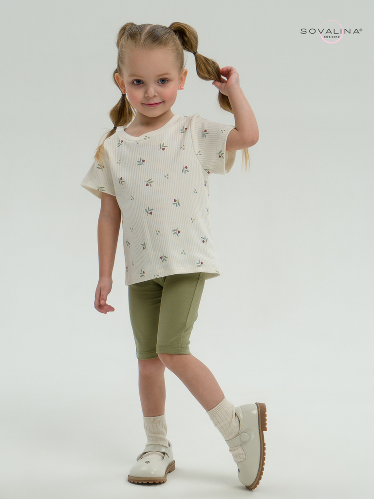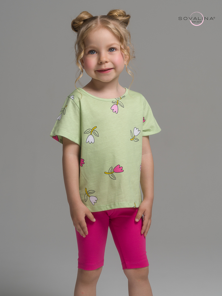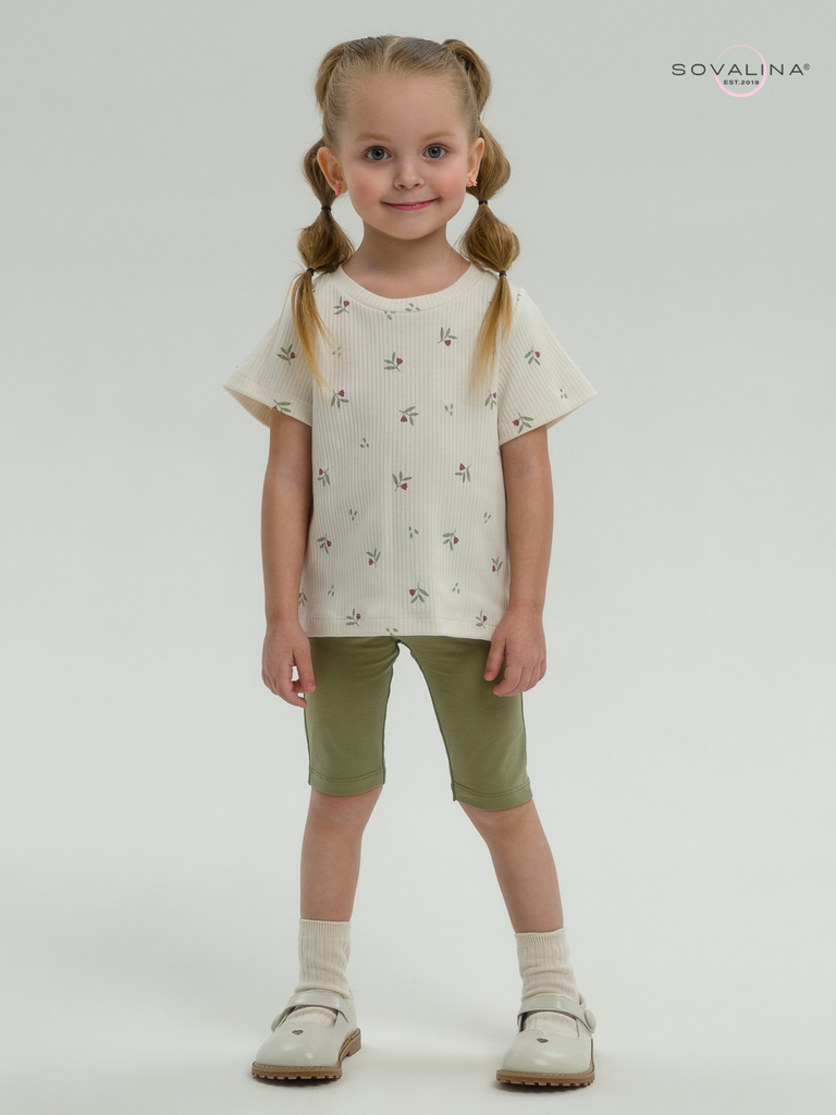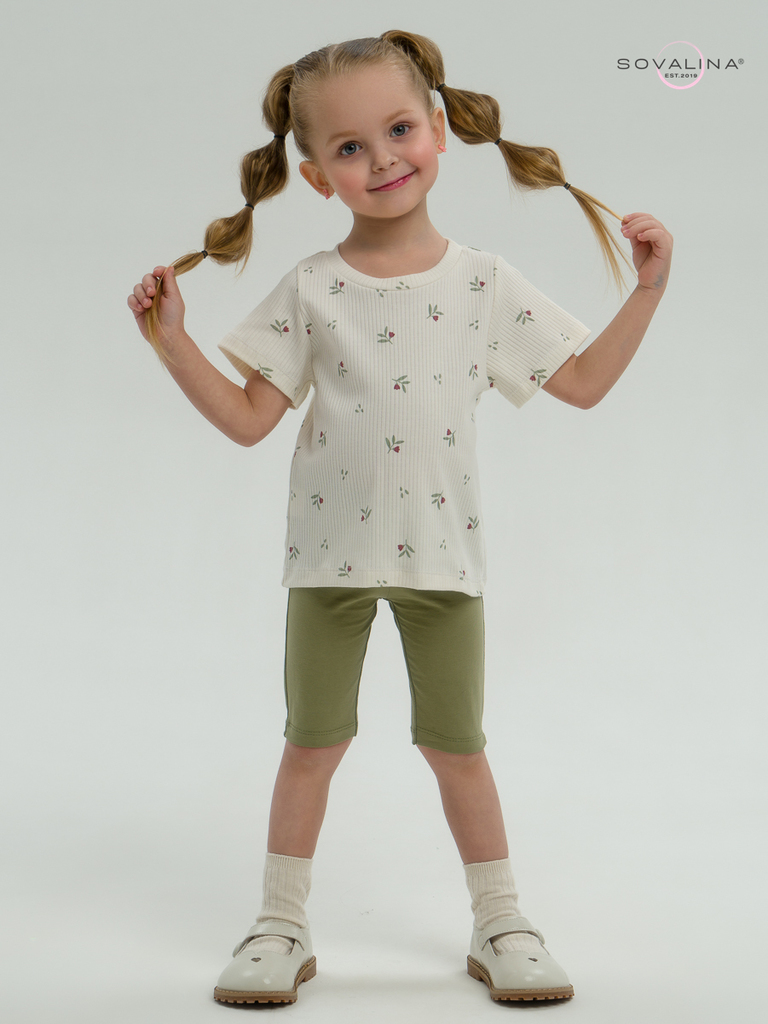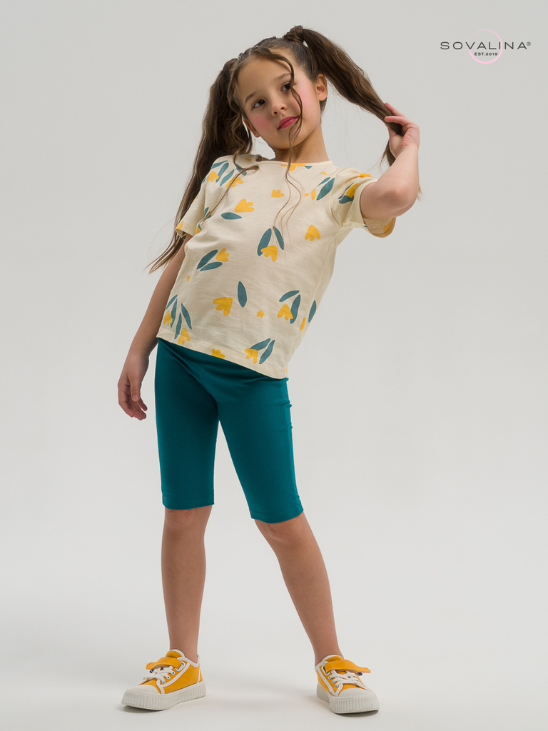 Летний хлопковый комплект для девочки бренда SOVAlina. Детский костюмчик двойка состоит из легкой и красивой футболки с цветочным принтом. Она выполнена из тонкого и прочного трикотажа, что делает ее ... Показать описаниеидеальной на каждый день в садик. Модный спортивный комплект также включает эластичные велосипедки на резинке, обеспечивающие комфортную посадку для танцев или фитнеса. Майка с короткими рукавами и модным дизайном добавляет акцент этому комплекту. Изготовлена из хлопка и обеспечивает максимальный комфорт и свободу движений, подойдет для дома. Этот тонкий и легкий комплект также подходит как форма для тренировок и физкультуры. Он идеально сидит на ребенке и обеспечивает комфорт.