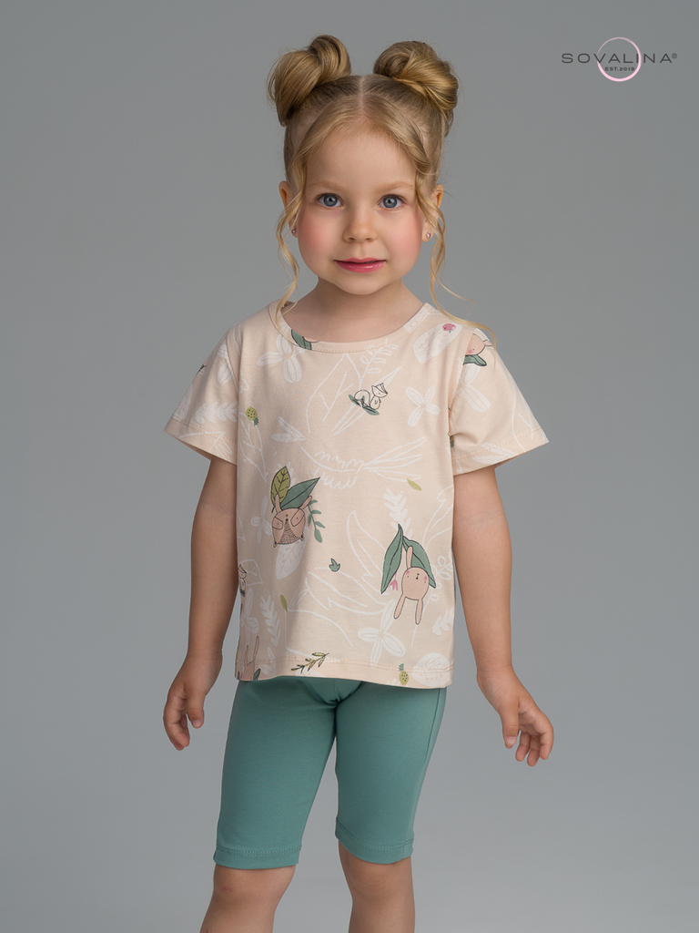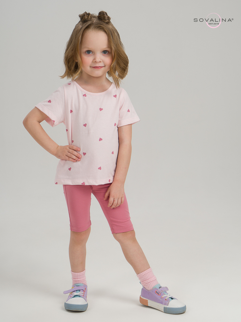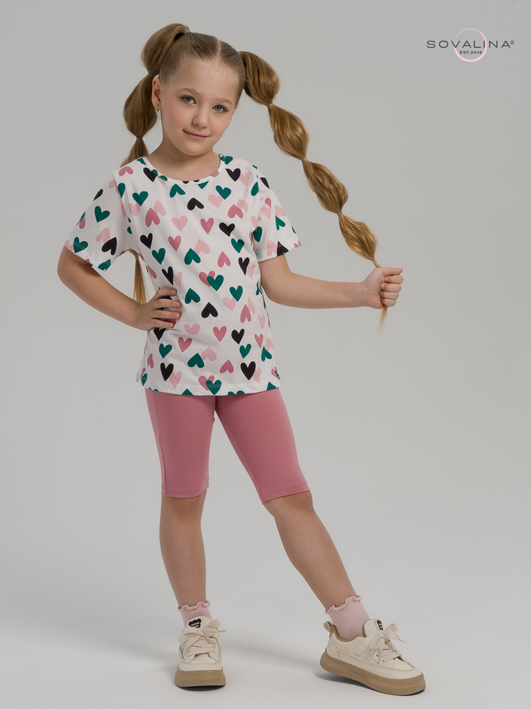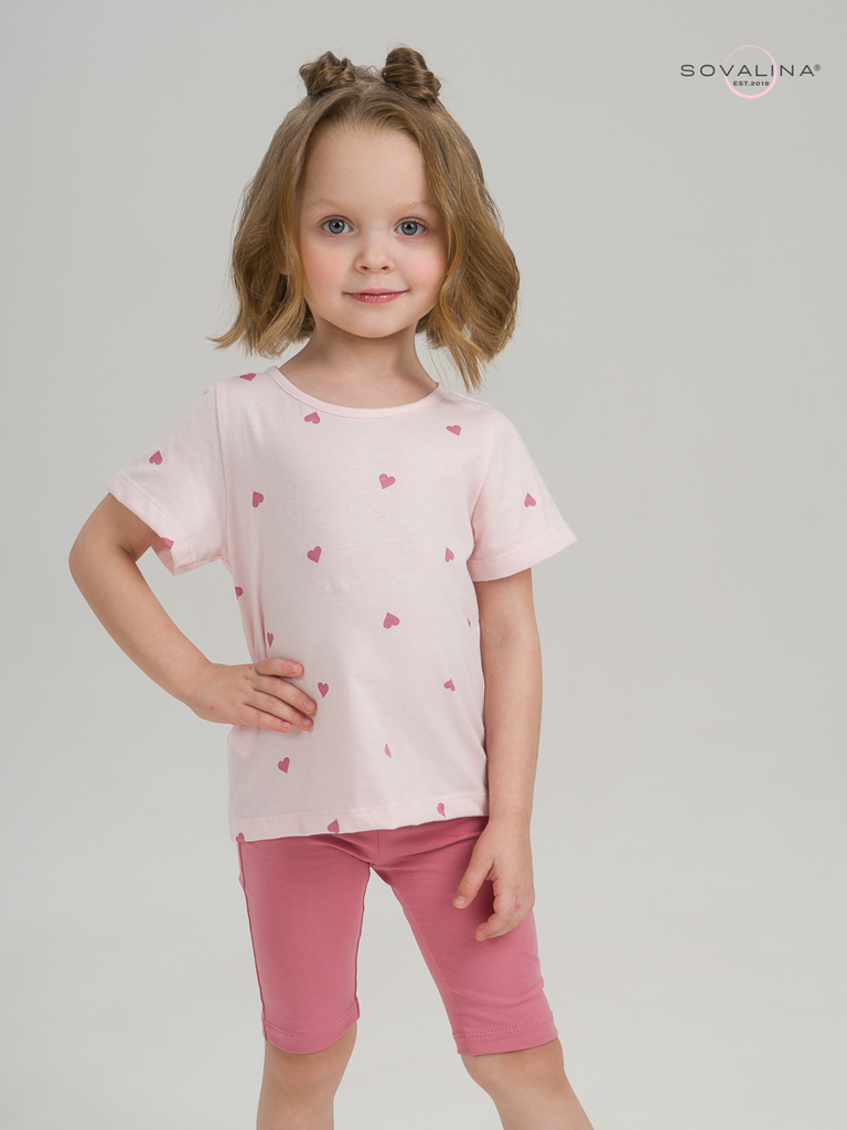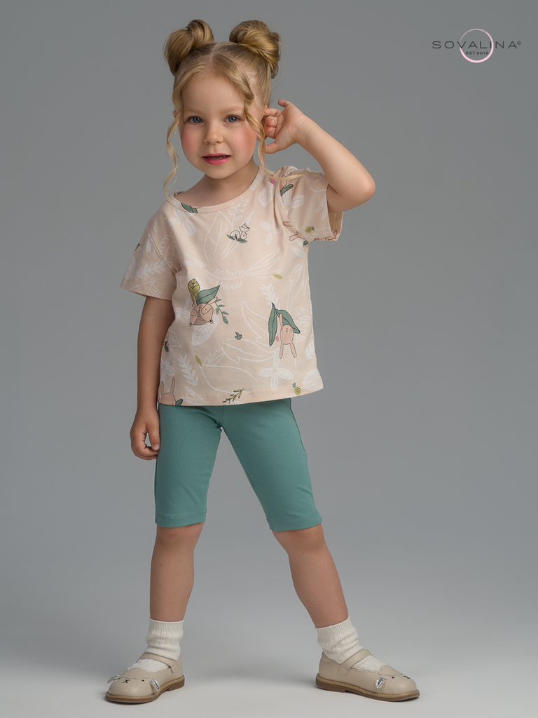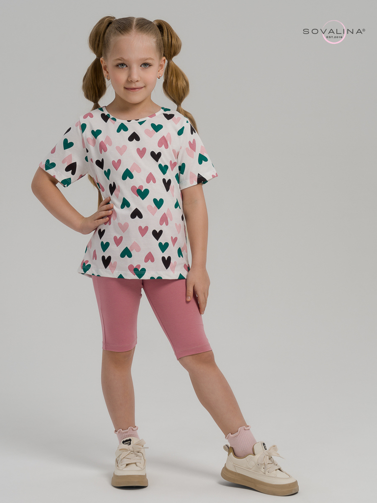 Летний хлопковый комплект для девочки бренда SOVAlina. Детский костюмчик двойка состоит из легкой и красивой футболки с цветочным принтом. Она выполнена из тонкого и прочного трикотажа, что делает ее ... Показать описаниеидеальной на каждый день в садик. Модный спортивный комплект также включает эластичные велосипедки на резинке, обеспечивающие комфортную посадку для танцев или фитнеса. Майка с короткими рукавами и модным дизайном добавляет акцент этому комплекту. Изготовлена из хлопка и обеспечивает максимальный комфорт и свободу движений, подойдет для дома. Этот тонкий и легкий комплект также подходит как форма для тренировок и физкультуры. Он идеально сидит на ребенке и обеспечивает комфорт.