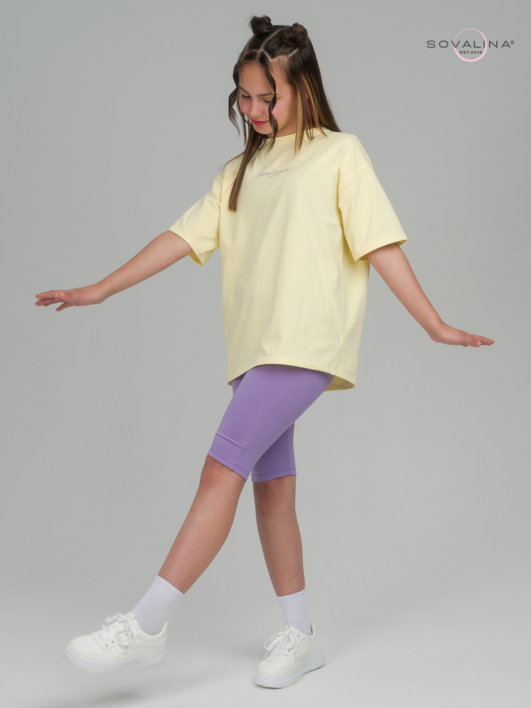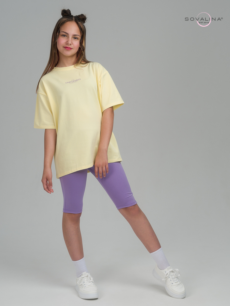 Летний хлопковый комплект для девочки бренда SOVAlina. Детский костюмчик двойка состоит из легкой и красивой футболки с космическим принтом. Она выполнена из тонкого и прочного трикотажа, что делает е... Показать описаниее идеальной на каждый день в садик. Модный спортивный комплект также включает эластичные велосипедки на резинке, обеспечивающие комфортную посадку для танцев или фитнеса. Майка с короткими рукавами и модным дизайном добавляет акцент этому комплекту. Изготовлена из хлопка и обеспечивает максимальный комфорт и свободу движений, подойдет для дома. Этот тонкий и легкий комплект также подходит как форма для тренировок и физкультуры. Он идеально сидит на ребенке и обеспечивает комфорт.
