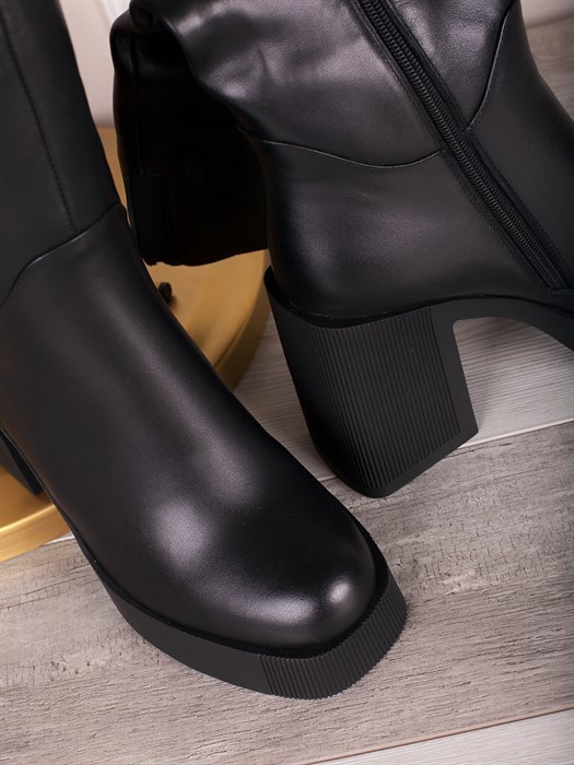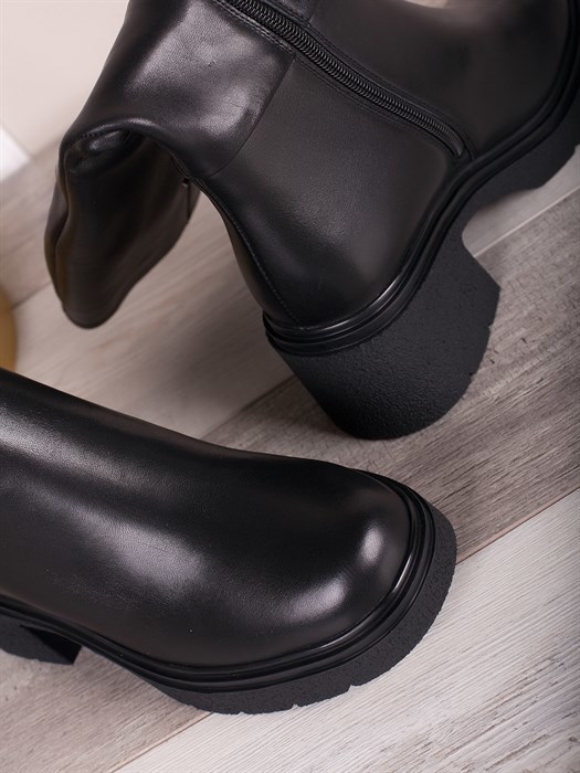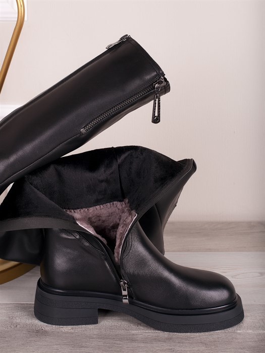 Вид застежки: Молния-замок Вид обуви: Ботинки Высота голени (см): 17 Высота каблука (см): 4 Высота подошвы (см): 2 Материал низа: Термопластичная резина(ТПР) Материал стельки: Натуральный мех Модель о... Показать описаниебуви: Повседневная обувь Назначение обуви: Офис/ Университет/ Школа/ Прогулка/ Отдых Ортопедия: Да Полнота обуви: Средняя Декоративные элементы: Креативный декор Материал верха: Натуральная кожа Материал подкладки: Натуральный мех Особенности модели: Комфорт/ Качество/ Практичность/ Свобода движений Сезонность: Зима Страна производства: КИТАЙ Цвет: Черный Габариты упаковки (мм): 280x110x280 Справочник по размерам: 36 размер - стелька 22,5-23см-голень-29см 37 размер - стелька 23-23,5см-голень-29см 38 размер - стелька 24-24,5см-голень-29,5см 39 размер - стелька 24,5-25см-голень-30см 40 размер - стелька 25-25,5см-голень-30см