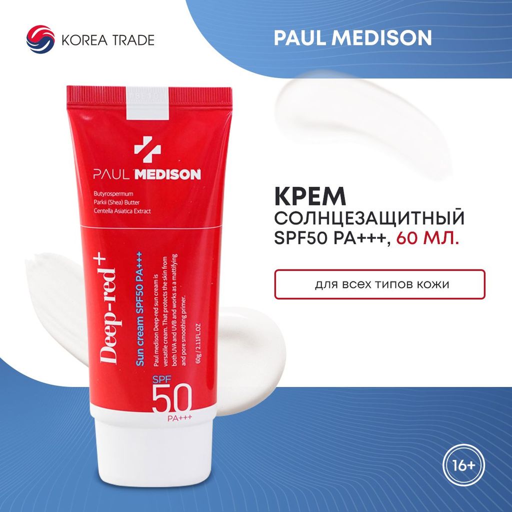 PAUL MEDISON Deep-red Sunscreen SPF50 PA+++ Солнцезащитный крем 60млВопросы по товару