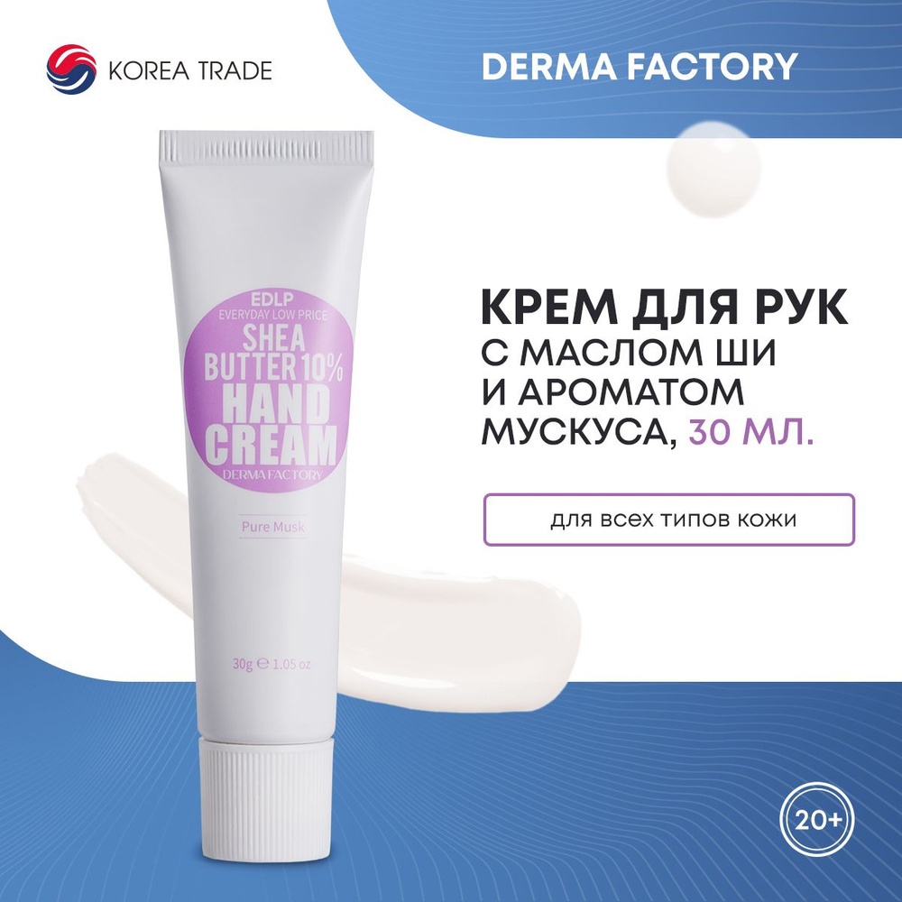 DERMA FACTORY EDLP Shea Butter 10% Hand Cream Pure Musk Увлажняющий крем для рук с маслом ши и ароматом белого мускуса 30гВопросы по товару