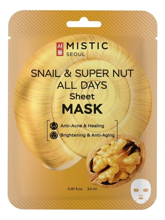 MISTIC SNAIL & SUPER NUT ALL DAYS Sheet MASK Тканевая маска для лица с муцином улитки и экстрактом ореха 24млВопросы по товару