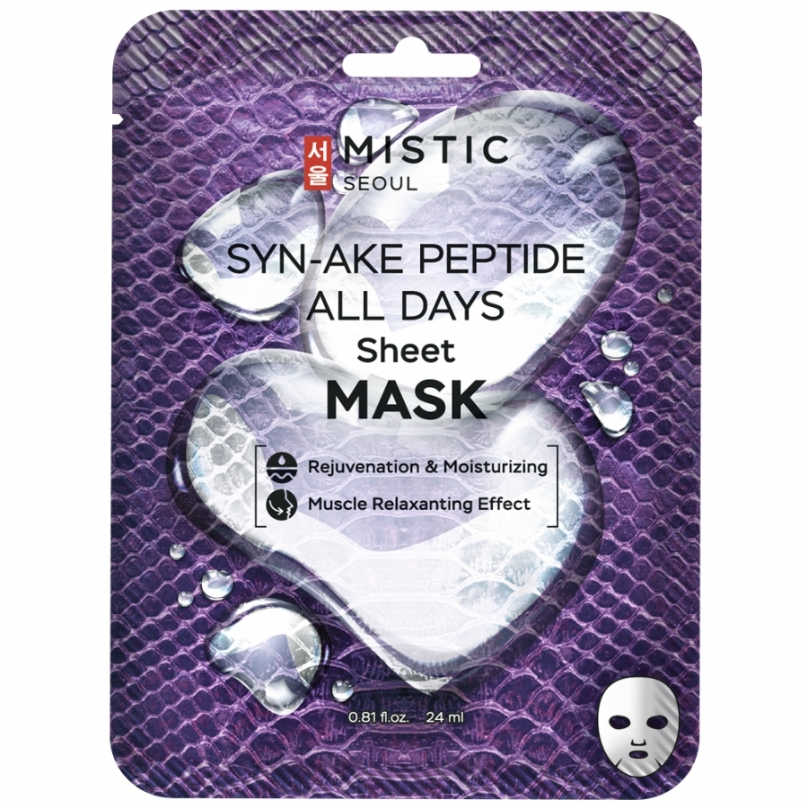 MISTIC SYN-AKE PEPTIDE ALL DAYS Sheet MASK Тканевая маска для лица с пептидом змеиного яда 24млВопросы по товару