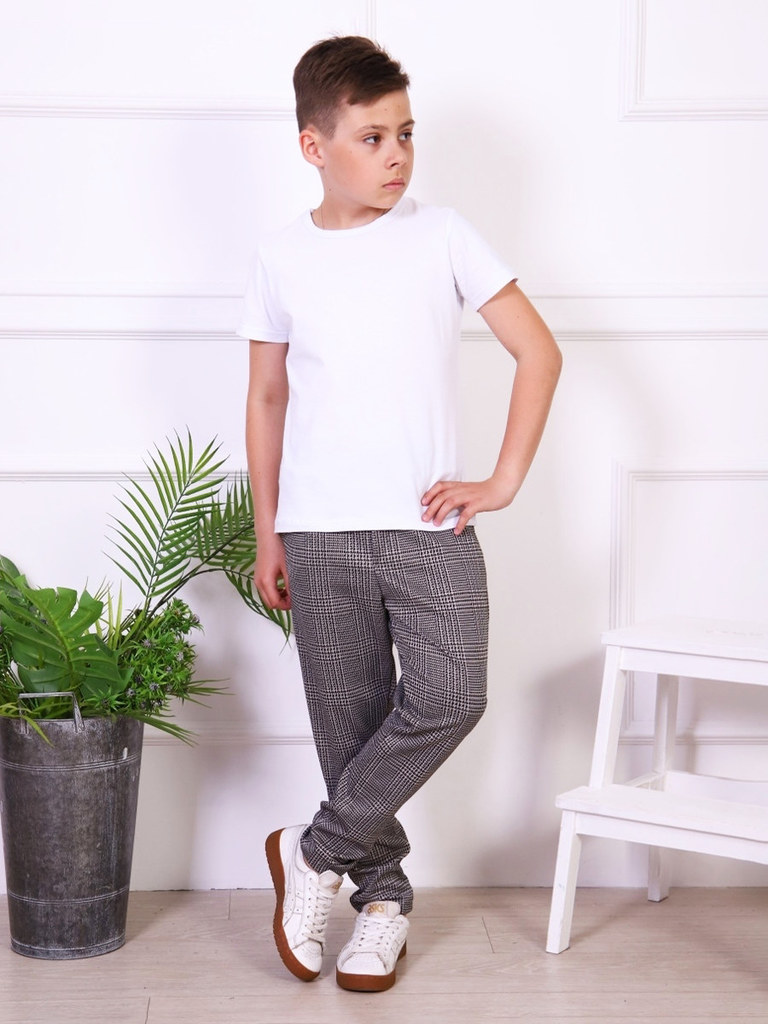 Отличные брюки для мальчика в клетку, изготовленные из плотного материала. На поясе удобная мягкая резинка с завязками, по бокам - два внутренних кармана. Внимание: расцветка может незначительно отлич... Показать описаниеаться от представленной на фото. Замеры модели: Размер 146: длина по внешнему шву 84 см, по внутреннему шву 59,5 см; Размер 152: длина по внешнему шву 89,5 см, по внутреннему шву 62,5 см; Размер 158: длина по внешнему шву 90 см, по внутреннему шву 64,5 см; Размер 170: длина по внешнему шву 100 см, по внутреннему шву 74,5 см. Полиэстер 75%, вискоза 20%, лайкра 5%