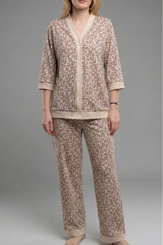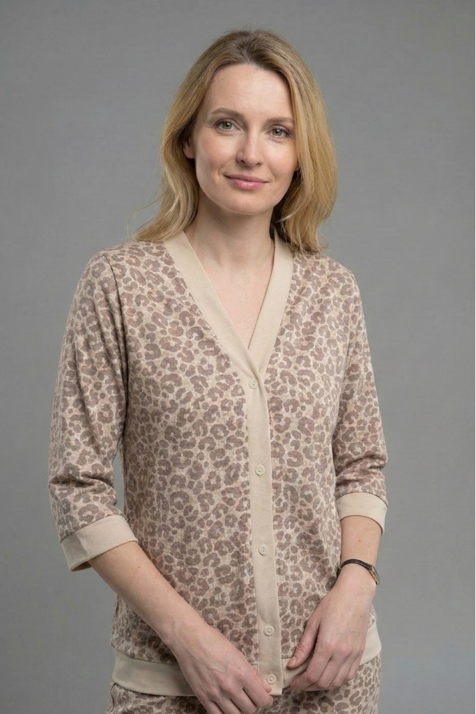 Женская пижама из 100% хлопка — идеальный вариант для комфортного сна и уютного отдыха дома. Натуральная ткань мягкая, дышащая и приятная к телу, подходит для повседневного использования в любое время... Показать описание года. Модель выполнена в удобном свободном силуэте, не сковывает движений и обеспечивает максимальный комфорт. Брюки на мягкой резинке, без карманов, удобно сидят по фигуре и не создают лишнего объёма. Кофта застёгивается на пуговицы, что делает пижаму практичной и комфортной в носке, а рукав длиной 3/4 обеспечивает удобство и свободу движений. Пижама отлично подходит не только для сна, но и в качестве стильного и уютного домашнего костюма. Модель представлена в широком размерном ряду и выполнена в трендовых расцветках с актуальными принтами, благодаря чему станет прекрасным подарком для родных и близких — практичным, красивым и по-настоящему комфортным. * Артикул: 9680 * Состав Хлопок 100% * ГОСТ 31409-2009 * Цвет Бежевый * Изготовитель ИП Вартанян Марина Валерьевна * Торговая марка Lika Dress * Тип ткани Кулирка * Для кого для женщин * Застежка Пуговицы * Уход Машинная стирка * Комплектность Халат/ брюки * ТН ВЭД 6108310000