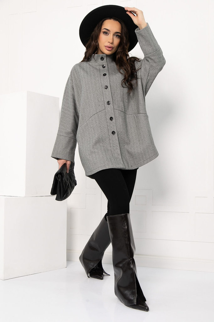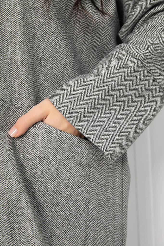 Артикул: Б12484-7. Тип ткани: смесовая. Состав: 50% шерсть, 30% вискоза, 20% полиэстер. Материал: смесовая шерсть. Цвет: серый. Принт: отсутствует. Вид застежки: пуговицы. Силуэт: оверс... Показать описаниеайз. Карманы: есть. Подкладка: отсутствует. Температурный режим: от -5 °C до +10 °C Декоративные элементы: отсутствуют. Длина по спинке от верхней точки плеча: 44-48/ 80 см, 50-52/ 81 см. Размер изделия на модели: 44 Рост модели: 168 см. Пальто выполнено в стиле оверсайз, что обеспечивает комфорт и свободу движений. Его выразительный двубортный английский воротник придаёт образу элегантность. Это пальто станет настоящей находкой для женщин, которые ценят удобство и стиль. Классический серый цвет делает его универсальным и позволяет легко сочетать с другими предметами гардероба, создавая разнообразные образы. Уход за изделием: ручная стирка до 30 градусов; нельзя отбеливать; отжим запрещён; гладить при t не более 110 С; гладить с изнанки. Внимание! Рекомендуем ориентироваться на размерную сетку и выбирать свой привычный размер, согласно размерной таблице. *Допуск отклонения длины при массовом производстве 1-3 см является нормой.