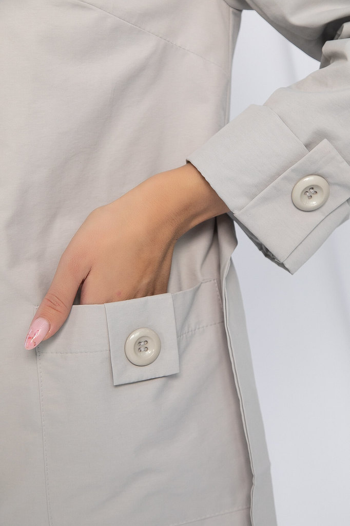 Артикул: П13015-14М. Тип ткани: смесовый. Состав: 65% хлопок, 35% вискоза. Материал: плащевка. Цвет: серый. Принт: отсутствует. Вид застежки: пуговицы. Силуэт: трапеция. Карманы: есть. ... Показать описаниеПодкладка: отсутствует. Декоративные элементы: паты на пуговицах, пояс в комплекте. Длина по спинке от верхней точки плеча: 44-54/ 95 см. Размер изделия на модели: 44 Рост модели: 168 см. В прохладную погоду этот плащ станет незаменимым элементом вашего гардероба! Стильный и функциональный предмет одежды имеет накладные карманы с патами в виде отделки, закреплены пуговицами, что придаёт ему особый шарм. Для того чтобы подчеркнуть талию, предусмотрен съёмный пояс, который добавляет образу женственности и элегантности. Уход за изделием: ручная стирка до 30 градусов; нельзя отбеливать; отжим запрещён; гладить при t не более 110 С; гладить с изнанки. Внимание! Рекомендуем ориентироваться на размерную сетку и выбирать свой привычный размер, согласно размерной таблице. *Допуск отклонения длины при массовом производстве 1-3 см является нормой.