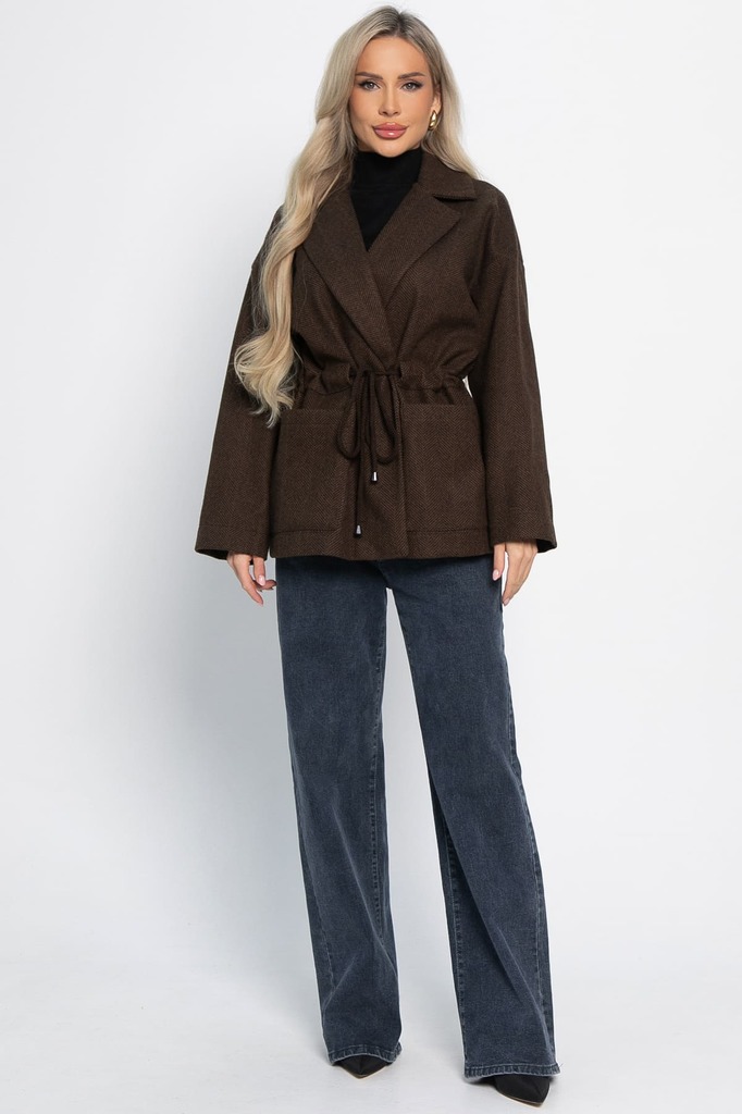 Состав : 50% шерсть, 30% вискоза, 20% полиэстер Материал : пальтовый драп Цвет : коричневый Принт : ёлочка Силуэт : прямой Карманы : есть Подкладка : отсутствует Вид застежки : кулиска Декоративные эл... Показать описаниеементы : отсутствуют Длина : 44 - 75 см,, 46 - 76 см,, 48 - 77 см,, 50 - 78 см,, 52 - 79 см,, 54 - 80 см Обхват груди : 44 - 124, 46 - 128, 48 - 132, 50 - 136, 52 - 140, 54 - 144 Обхват бёдер : 44 - 124, 46 - 128, 48 - 132, 50 - 136, 52 - 140, 54 - 144 Обхват талии : 44 - 116, 46 - 120, 48 - 124, 50 - 128, 52 - 132, 54 - 136 Дополнительные параметры размеров : 44 - длина рукава Температурный режим: от -5 °C до +10 °C Отснято с джинсами Б14602-4М Пальто-пиджак в шоколадной расцветке — это отличный вариант для демисезонного гардероба. Модель выполнена из драповой ткани, которая делает её тёплой и уютной в любую погоду. Свободный крой и рукав-реглан обеспечивают максимальный комфорт и свободу движений. Это базовая вещь, которая сочетает в себе элементы классического и кэжуал стилей. Благодаря этому она станет универсальным элементом вашего гардероба. Внимание! Рекомендуем ориентироваться на размерную сетку и выбирать свой привычный размер, согласно размерной таблице. *Допуск отклонения длины при массовом производстве 1-3 см является нормой. Уход за изделием: Ручная стирка или стирка в машине при температуре до 30 °C, деликатный режим. Не использовать отбеливатели. Разрешена глажка при температуре до 110 °C. При глажке использовать специальную насадку на подошве утюга, гладить с паром. Не замачивать и не выжимать. Стирать изделие наизнанку, отдельно от других вещей.