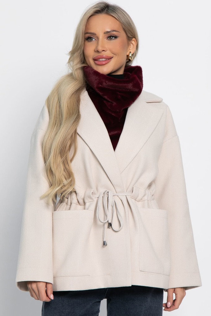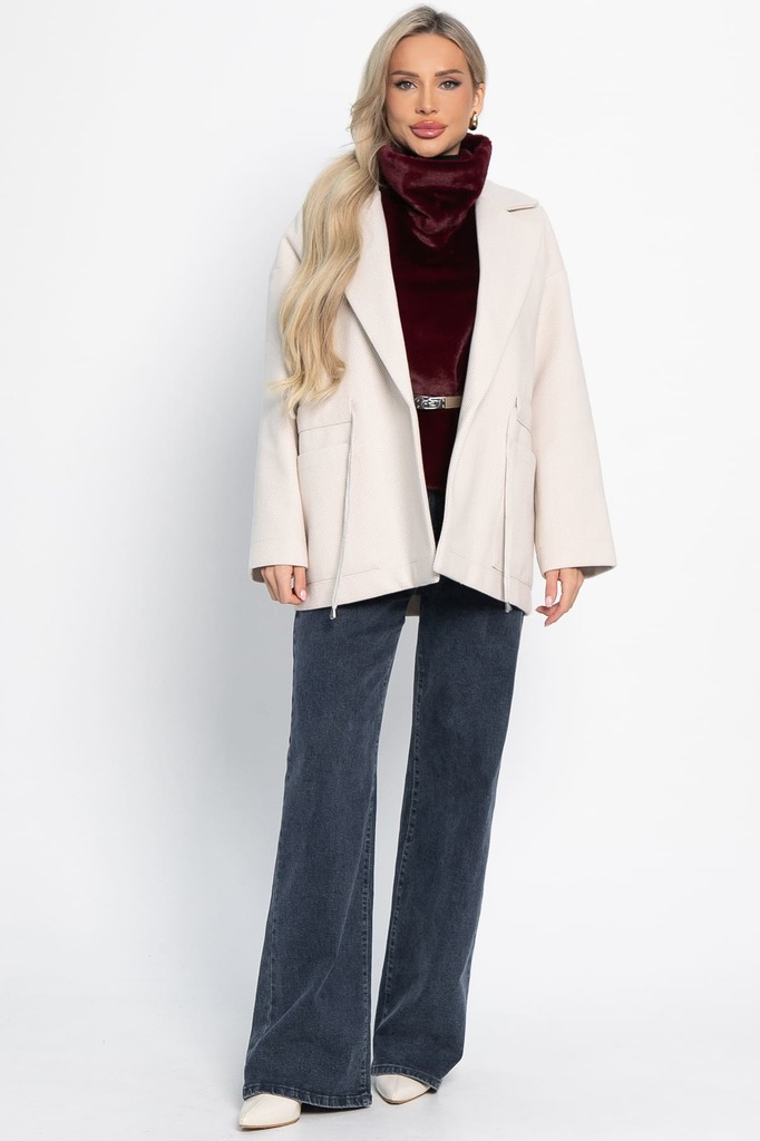 Состав : 50% шерсть, 30% вискоза, 20% полиэстер Материал : пальтовый драп Цвет : бежевый Принт : ёлочка Силуэт : прямой Карманы : есть Подкладка : отсутствует Вид застежки : кулиска Декоративные элеме... Показать описаниенты : отсутствуют Длина : 44 - 75 см,, 46 - 76 см,, 48 - 77 см,, 50 - 78 см,, 52 - 79 см,, 54 - 80 см Обхват груди : 44 - 124, 46 - 128, 48 - 132, 50 - 136, 52 - 140, 54 - 144 Обхват бёдер : 44 - 124, 46 - 128, 48 - 132, 50 - 136, 52 - 140, 54 - 144 Обхват талии : 44 - 116, 46 - 120, 48 - 124, 50 - 128, 52 - 132, 54 - 136 Дополнительные параметры размеров : 44 - длина рукава Температурный режим: от -5 °C до +10 °C Отснято с джинсами Б14602-4М и с манишкой А23-7 Пальто-пиджак — это отличный вариант для демисезонного гардероба. Модель выполнена из драповой ткани, которая делает её тёплой и уютной в любую погоду. Свободный крой и рукав-реглан обеспечивают максимальный комфорт и свободу движений. Это базовая вещь, которая сочетает в себе элементы классического и кэжуал стилей. Благодаря этому она станет универсальным элементом вашего гардероба. Внимание! Рекомендуем ориентироваться на размерную сетку и выбирать свой привычный размер, согласно размерной таблице. *Допуск отклонения длины при массовом производстве 1-3 см является нормой. Уход за изделием: Ручная стирка или стирка в машине при температуре до 30 °C, деликатный режим. Не использовать отбеливатели. Разрешена глажка при температуре до 110 °C. При глажке использовать специальную насадку на подошве утюга, гладить с паром. Не замачивать и не выжимать. Стирать изделие наизнанку, отдельно от других вещей.