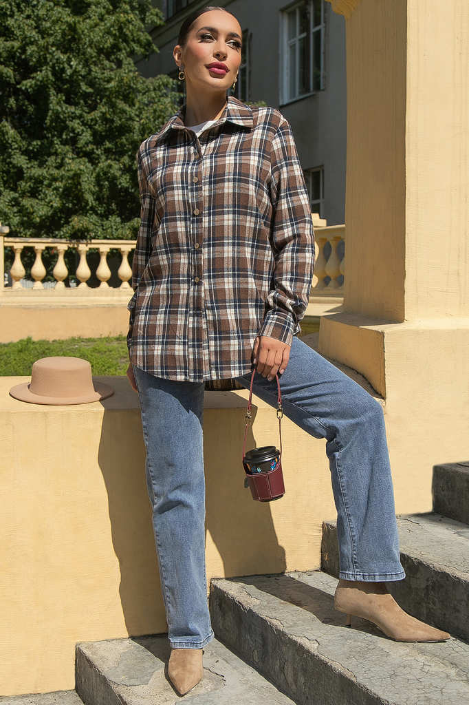 Состав : 80% хлопок, 20% полиэстер Материал : рубашечная байка Цвет : коричневый Принт : клетка Силуэт : прямой Карманы : отсутствуют Подкладка : отсутствует Вид застежки : пуговицы Декоративные элеме... Показать описаниенты : отсутствуют Длина : 44 - 75 см,, 46 - 76 см,, 48 - 77 см,, 50 - 78 см,, 52 - 79 см,, 54 - 80 см Обхват груди : 44 - 106, 46 - 110, 48 - 114, 50 - 118, 52 - 122, 54 - 126 Обхват бёдер : 44 - 110, 46 - 114, 48 - 118, 50 - 122, 52 - 126, 54 - 130 Обхват талии : 44 - 106, 46 - 110, 48 - 114, 50 - 118, 52 - 122, 54 - 126 Дополнительные параметры размеров : 44 - длина рукава Рубашка в клетку с длинными рукавами на пуговицах — это идеальное сочетание классики и современных тенденций. Она легко сочетается с различными моделями джинсов и брюк, что делает её универсальным вариантом для любого случая. Дизайн в клетку придаёт этой рубашке особый шарм и яркость, делая её отличным выбором для весны, когда хочется добавить в образ ярких акцентов, не забывая при этом о комфорте и уюте. Внимание! Рекомендуем ориентироваться на размерную сетку и выбирать свой привычный размер, согласно размерной таблице. *Допуск отклонения длины при массовом производстве 1-3 см является нормой. Уход за изделием: Ручная стирка или стирка в машине при температуре до 30 °C, деликатный режим. Не использовать отбеливатели. Разрешена глажка при температуре до 110 °C. При глажке использовать специальную насадку на подошве утюга, гладить с паром. Не замачивать и не выжимать. Стирать изделие наизнанку, отдельно от других вещей.
