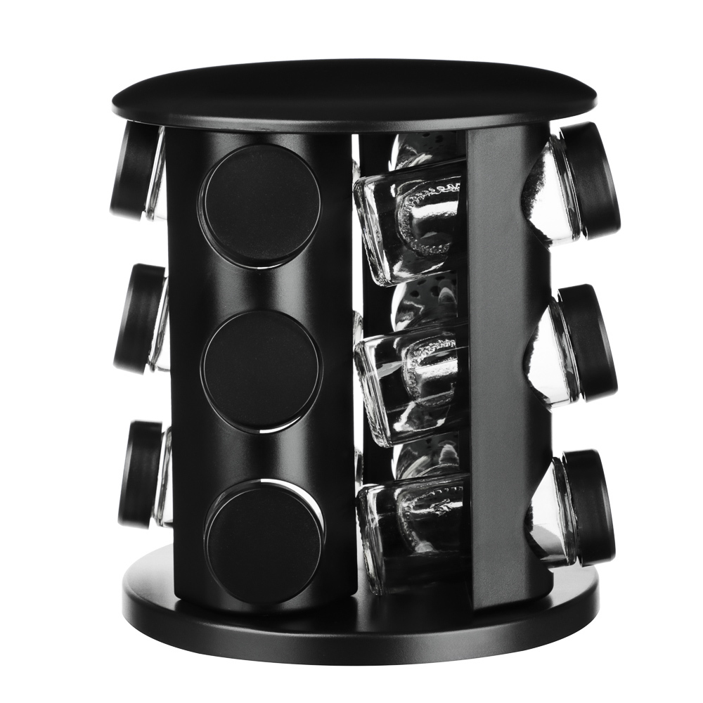 SATOSHI Набор банок для специй 16шт на подставке, 20х20х28см стекло+ABS пластик, черный