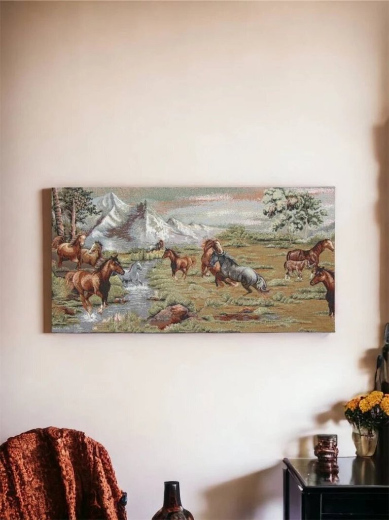 Ценителям искусства подойдут картины с изображениями известных пейзажей и натюрмортов. Также большое декоративное панно на стене можно дополнить элементами интерьера из гобеленовой ткани: шторами, подушками, обивкой мебели. Праздничный стол можно украсить скатертями и салфетками с тематическим рисунком: новогодними, цветочными и повседневными узорами. Гобеленовая ткань характеризуется высокой прочностью, поэтому изделия из нее прослужат долго и сохранят свой первоначальный вид.