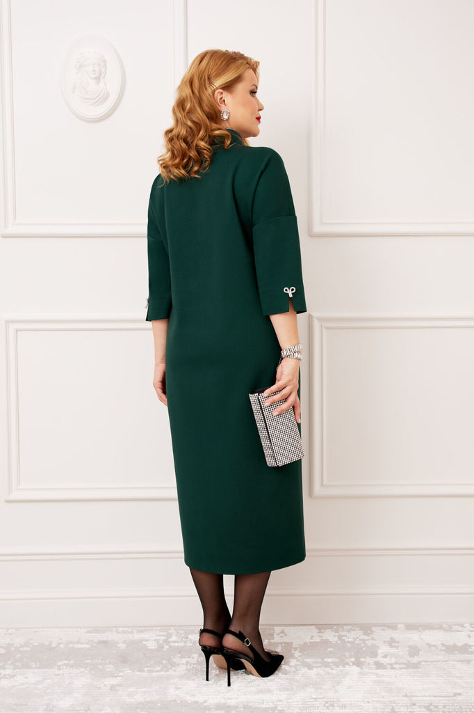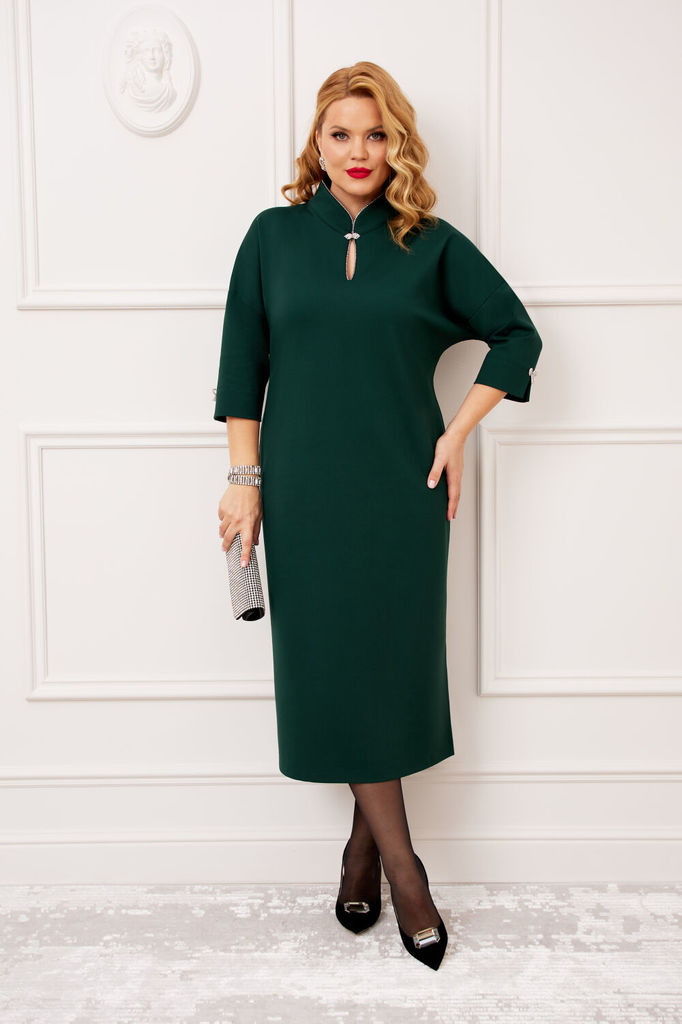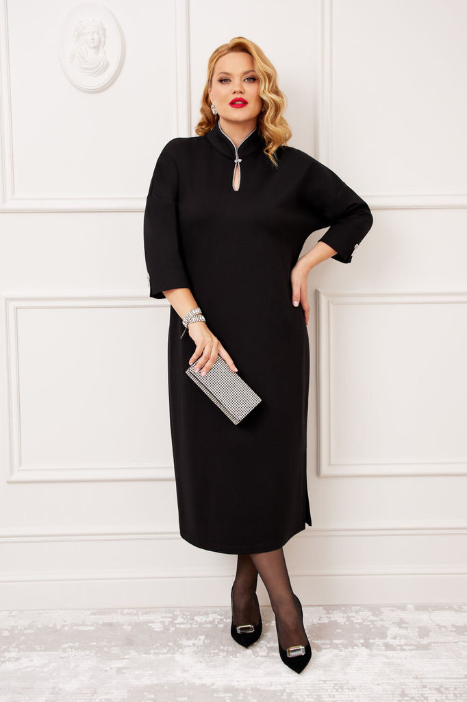 Состав: Вискоза-32%; ПЭ-65%; Эластан-3%; Элегантное и нарядное платье, выполнено из высококачественной трикотажной ткани (ткань мягкая, приятная к телу, хорошо тянется). Горловина стойка с вырезом-кап... Показать описаниеелькой и отделкой из блестящего канта с застежкой дизайнерской брошью, придает модели особый шарм. Рукав втачной, спущенный с манжетой и пришивным декором в виде бантика. Платье с левого бока по низу с небольшим разрезом. Модель стильная и практичная, невероятно стройнит, прекрасно подойдет для торжественного мероприятия, вы будете выглядеть неотразимо и роскошно.