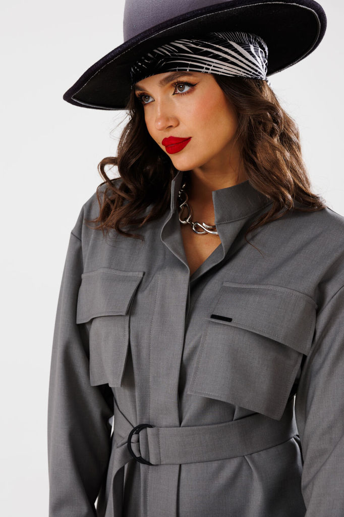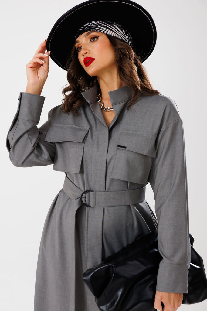 Состав: Вискоза-32%; ПЭ-65%; Эластан-3%; Стильное и эффектное платье-рубашка, выполнено из плательной ткани Лащенка с добавлением вискозы. Платье по переду с застежкой на потайную планку с пуговицами ... Показать описаниеи горловиной стойкой. По переду платье декорировано функциональными нагрудными карманами, придающими платью особый шарм и стиль. Рукав платья втачной, слегка спущенный, с манжетой и застежкой на 2 пуговицы. По низу платье по бокам с разрезами. В комплекте идет съемный пояс с завязкой через металлические полукольца. Модель стильная и практичная, прекрасно дополнит ваш осенний гардероб.