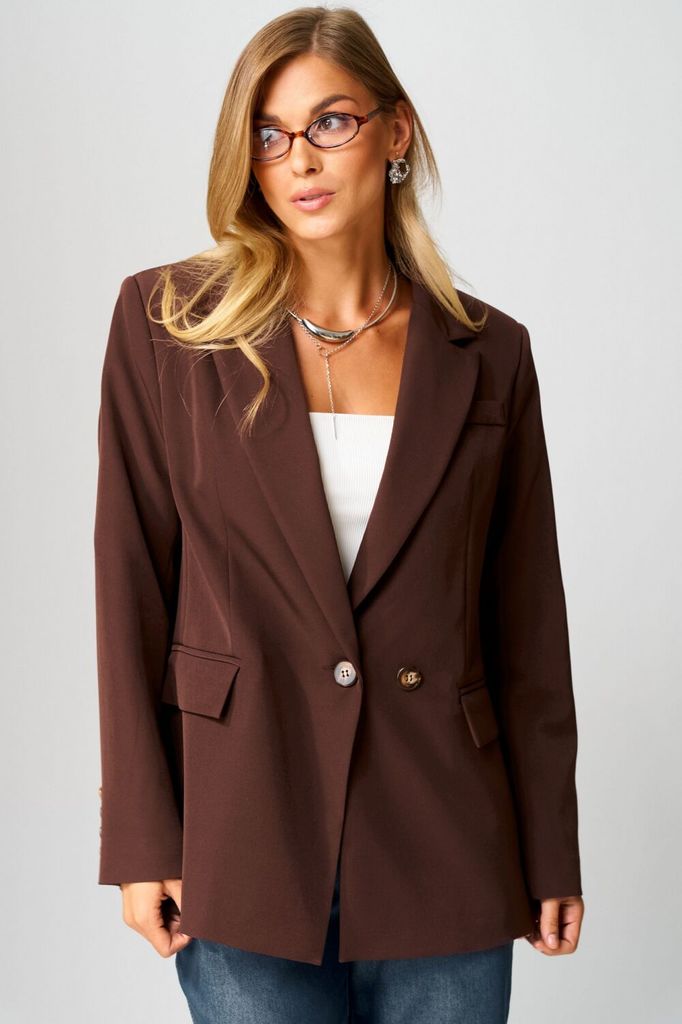 Состав: ПЭ-88%; Спандекс-12%; Жакет от LAIKONY свободного силуэта из экозамши. Воротник съемный с отрезной стойкой с обтачкой, на которой расположена застежка на 10 потайных петель и пуговиц. На верхн... Показать описаниеем воротнике - декоративная вышивка. Застежка центральная на 6 кнопок. Перед с рельефными швами и накладными карманами с листочками. На боковой части переда внизу от бокового шва расположены горизонтальные вытачки. Спинка с кокеткой. Рукава втачные двухшовные, с притачными манжетами. Верхняя часть рукавов с горизонтальным подрезом. Линия плеча спущена. Жакет на подкладке. Декор может отличаться от представленного на фотографии. Длина изделия по спинке 54-58 см в зависимости от размера, длина рукава 55 см от шва втачивания. Наш стильный жакет заменит вам куртку теплой солнечной осенью и весной. Будет отлично смотреться с нашими шоколадными брюками L-942-2.