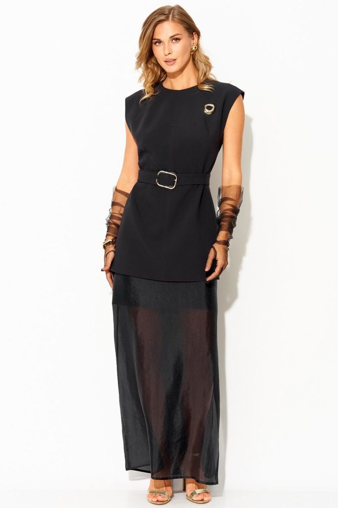 Состав: Жилет: Вискоза-25%; ПЭ-70%; Спандекс-5%; Юбка: Вискоза-77%; ПЭ-23%; Нарядный юбочный комплект от LAIKONY, состоящий изжилета из костюмной ткани и полупрозрачной юбки из тенсела. Жилет полуприл... Показать описаниеегающего силуэта, на подкладке. Вырез горловины округлой формы, застежка на потайную тесьму-молнию в среднем шве спинки. Детали переда жилета со средним швом, талиевыми вытачками, нагрудными вытачками и с вытачками на линии груди, исходящие от среднего шва. Деталь спинки жилета с талиевыми вытачками и со средним швом. Под проймами расположены «ластовицы». Декор может отличаться от представленного на фотографии. Пояс в комплекте. Длина жилета по спинке 74 см. Юбка двухслойная: верхняя - длиной «в пол», выполнена из тенсела, нижняя – выше коленей, выполнена из костюмной ткани. Сверху юбки соединены притачным поясом, застежка на потайную тесьму-молнию в левом боковом шве. Длина верхней юбки по спинке 104 см, длина нижней юбки 77 см. Наш очаровательный комплект будет актуален как на новогоднем корпоративе, так и на любом другом торжественном мероприятии!