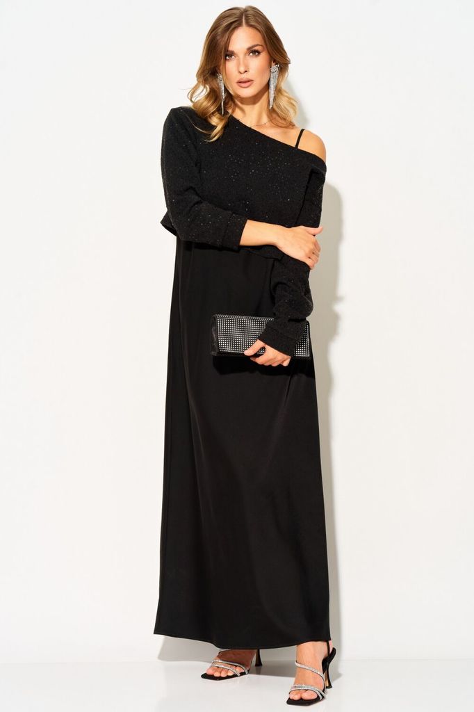 Состав: Джемпер: ПЭ-90%; Хлопок-6%; Эластан-4%; Платье: ПЭ-100%; Нарядный комплект от LAIKONY, состоящий из трикотажного джемпера и платья из атласа. Джемпер свободного силуэта, длиной до линии талии,... Показать описание со спущенной линией плеча, с втачными рукавами. Вырез горловины формы «лодочка», с втачной бейкой. Рукава втачные одношовные, с притачными манжетами. Длина джемпера по спинке 38-42 см в зависимости от размера, длина рукава 50 см от шва втачивания. Платье полуприлегающего силуэта, длиной «в пол», на бретелях, с «V-образным» вырезом горловины спинки и переда. Деталь переда платья с нагрудными вытачками, горловина оформлена декоративным кружевом. Длина изделия по спинке 118 см. Наш стильный комплект будет актуален как на новогоднем корпоративе, так и на любом другом торжественном мероприятии!