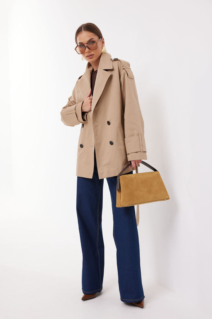 Состав: Вискоза-32%; ПЭ-65%; Спандекс-3%; Жакет мягкой формы на молнии. Рукав реглан. Воротник рубашечный. Низ собран на резинку. На переде карманы с клапаном,  погоны с пуговицей. По низу рукава... Показать описание шлевки и пата с застежкой на пряжку. Жакет на подкладке. Длина жакета 57 см. Длина рукава 74 см. (от горловины) Измерения по готовому изделию: 44 р-р: ОГ - 126 см., ОТ - 122 см., ОБ - 124 см. 46 р-р: ОГ - 130 см., ОТ - 126 см., ОБ - 128 см. 48 р-р: ОГ - 134 см., ОТ - 130 см., ОБ - 132 см. 50 р-р: ОГ - 138 см., ОТ - 134 см., ОБ - 136 см. 52 р-р: ОГ - 142 см., ОТ - 138 см., ОБ - 140 см.