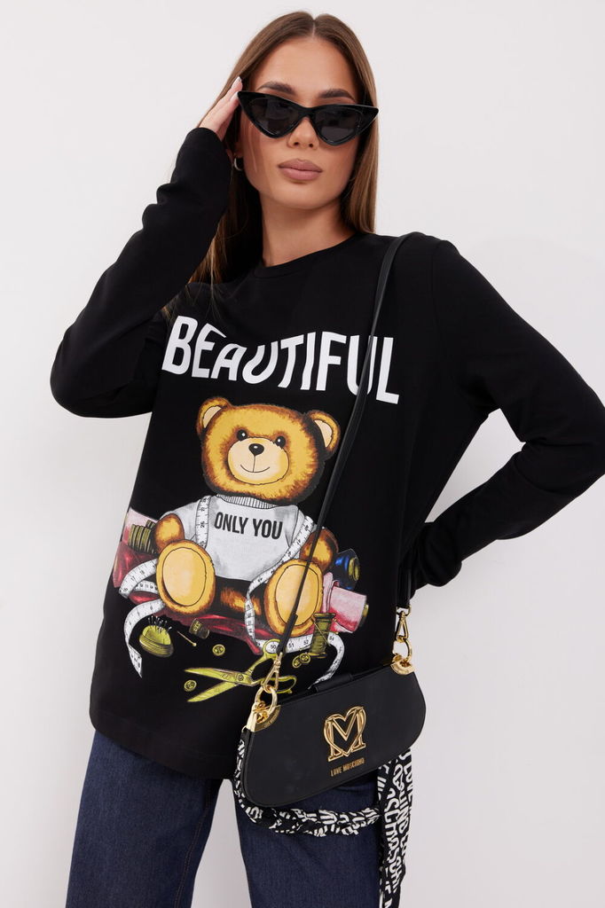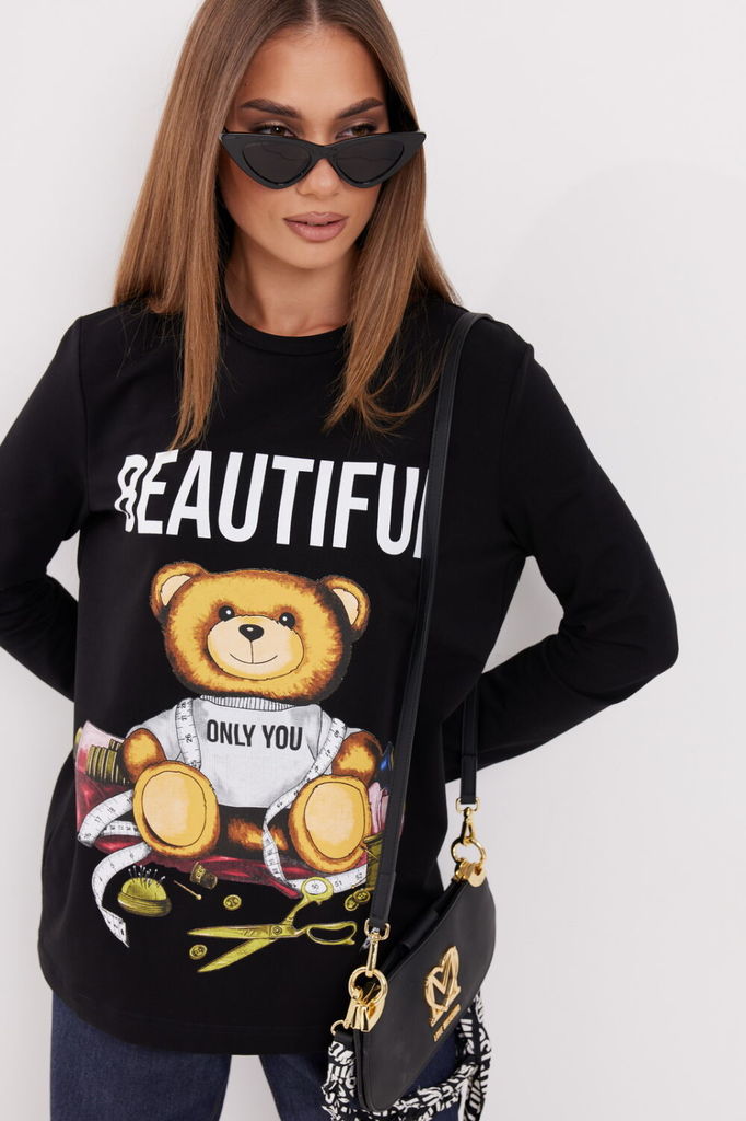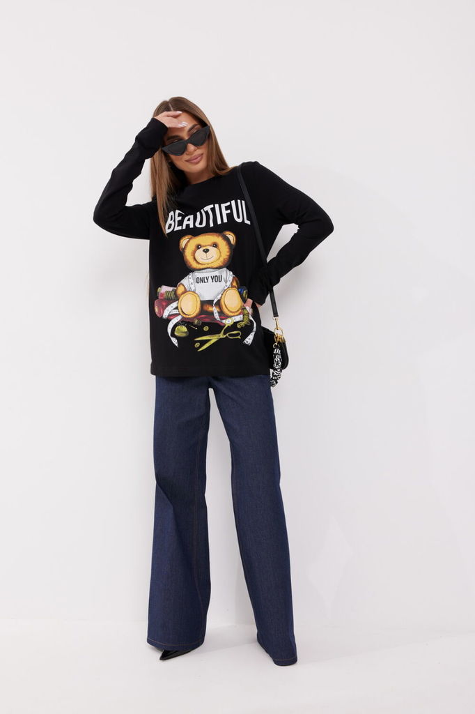 Состав: Хлопок-92%; Эластан-8%; Джемпер прямого силуэта из трикотажного полотна. Горловина круглой формы. Рукав прямой удлинённый  с отверстием для большого пальца. На переде выполнена печать. Дл... Показать описаниеина рукава 68 см. Длина джемпера 67 см. Измерения по готовому изделию: 44 р-р: ОГ - 100 см., ОТ - 96 см., ОБ - 100 см. 46 р-р: ОГ - 104 см., ОТ - 100 см., ОБ - 104 см. 48 р-р: ОГ - 108 см., ОТ - 104 см., ОБ - 108 см. 50 р-р: ОГ - 112 см., ОТ - 108 см., ОБ - 112 см. 52 р-р: ОГ - 116 см., ОТ - 112 см., ОБ - 116 см.