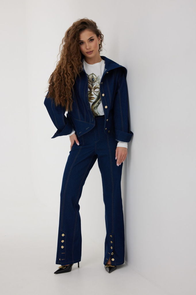 Состав: Хлопок-97%; Эластан-3%; Брюки из джинса, прямого кроя, слегка расширенные к низу. Высокая посадка, пояс притачной, застежка спереди на молнию и джинсовую пуговицу. По переду боковые карманы, в... Показать описаниеертикальные швы заканчиваются шлицей с петлями и пуговицами, сзади под кокеткой накладные карманы. Длина по боковому шву от пояса - 108 см. Длина по шаговому шву - 81 см. Измерения по готовому изделию: 44 р-р: ОТ - 74 см.( в застегнутом виде) , ОБ - 97 см. 46 р-р: ОТ - 78 см. (в застегнутом виде) , ОБ - 101 см. 48 р-р: ОТ - 82 см.( в застегнутом виде) , ОБ - 105 см. 50 р-р: ОТ - 86 см.( в застегнутом виде) , ОБ - 109 см. 52 р-р: ОТ - 90 см.( в застегнутом виде) , ОБ - 113 см.