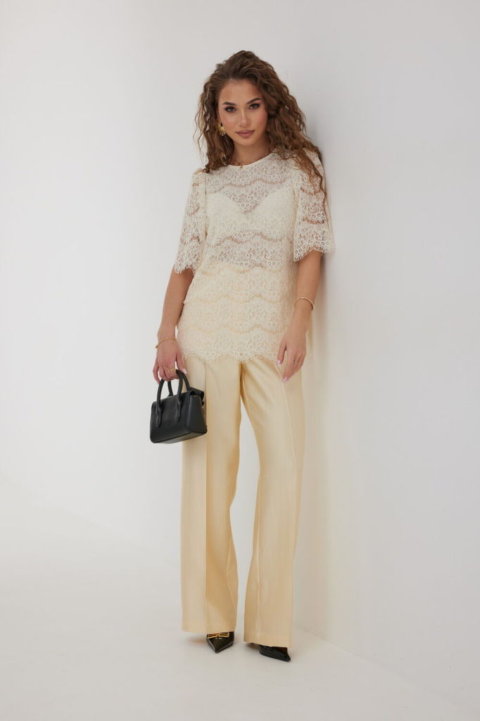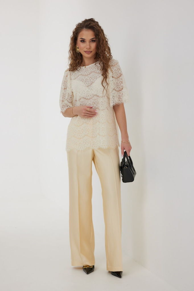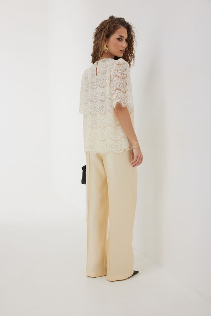 Состав: Блуза: ПЭ-100%; Подкладка: ПЭ-100%; Блузка прямого силуэта со спущенным плечом. Перед из фактурной ткани «розы на сетке», спинка из полупрозрачной ткани «органза».  Горловина округлой фор... Показать описаниемы, по спинке застежка на навесную петлю и пуговицу. Перед на атласной подкладке. Длина 59 см. Измерения по готовому изделию: 44 р-р: ОГ - 100 см., ОТ - 96 см., ОБ - 106 см. 46 р-р: ОГ - 104 см., ОТ - 100 см., ОБ - 110 см. 48 р-р: ОГ - 108 см., ОТ - 104 см., ОБ - 114 см. 50 р-р: ОГ - 112 см., ОТ - 108 см., ОБ - 118 см. 52 р-р: ОГ - 116 см., ОТ - 112 см., ОБ - 122 см.