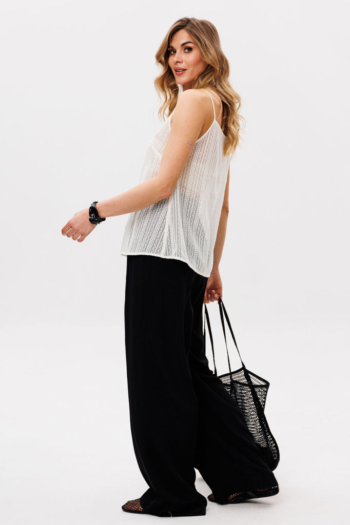 Состав: ПЭ-100%; Брюки выполнены из сетки с рисунком. Брюки прямого силуэта, длиной в пол, на притачном поясе с эластичной тесьмой. Длина: 111 см. Гарантийный срок не установлен ГОСТ 25294-2003