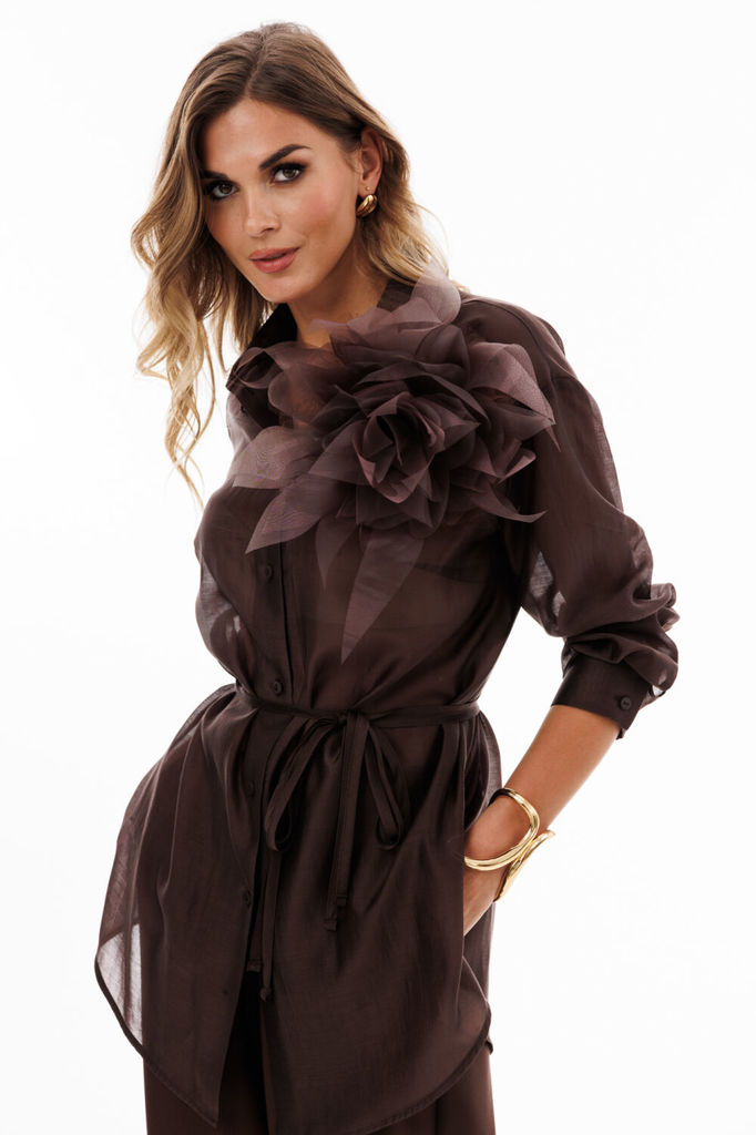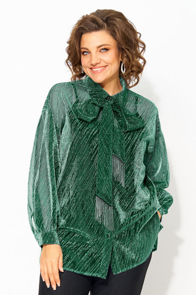 Состав: Металл-20%; ПЭ-76%; Спандекс-4%; Сезон: Осень-Зима Рост: 164 Страна бренда: Беларусь Состав: Металл-20%; ПЭ-76%; Спандекс-4%; Трендовая блузка из легкой сетчатой ткани c эффектом мерцания стан... Показать описаниеет стильным дополнением вашего гардероба. Ее можно комбинировать с различными элементами гардероба, накинуть поверх платья или топа. Модель выполнена с воротником-стойкой, который добавляет элегантности образу. Застежка центральная на петли и пуговицы. По бокам расположены разрезы. Свободный крой обеспечивает комфорт и подчеркивает женственность. Длинный рукав с манжетами делает ее универсальной для любого сезона, а удлиненный силуэт добавляет изысканности. В комплект входит съёмный пояс с декоративной бахромой, который может служить в виде шарфика и добавить элегантность образу. Изделие идеально подходит для повседневного ношения, офиса или вечернего выхода. Отлично сочетается с базовыми браками из коллекции от бренда «Лилиана». Длина по спинке – 70 см, рукав – 63 см
