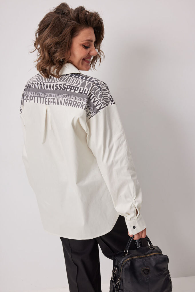 Состав: Спандекс-6%; Хлопок-94%; Сезон: Осень-Зима Рост: 170 Страна бренда: Беларусь Состав: Спандекс-6%; Хлопок-94%; Если Вы ищете что-то особенное и эффектное, что подчеркнёт Вашу индивидуальность, ... Показать описаниеэта блуза именно то, что нужно! Блуза выполнена из сочетания однотонного и принтованного хлопкового текстиля. Стильный текстовый принт добавит индивидуальность в повседневный образ и сделает его запоминающимся! Блуза свободного кроя с отложным воротником на планке с застёжкой на петли – пуговицы контрастного цвета. Рукав со спущенной проймой на манжете. Спинка на кокетке со встречной складкой. Низ спинки имеет фигурную форму. К модели идеально подходят брюки арт. 6069, брюки арт. 6068. Для того, чтобы правильно подобрать свой размер, необходимо ваш замер объёма груди разделить на 2. (например, объём груди 104:2=52 размер). Блуза: длина по спинке от плеча: 78 см длина рукава от горловины: 79 см Обхват груди: 118см/48р; 122см/50р; 126см/52р; 130см/54р; 134см/56р; 138см/58р; 142см/60р; 146см/62р. Рост фотомодели 174 см, размер одежды на фото 52.