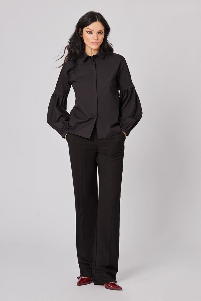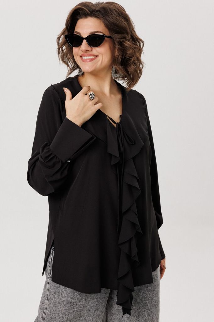 Состав: ПЭ-97%; Спандекс-3%; Сезон: Осень-Зима Рост: 164 Страна бренда: Беларусь Состав: ПЭ-97%; Спандекс-3%; Блузка полуприлегающего силуэта, с втачным рукавом. Застежка центральная на петли и пугови... Показать описаниецы. Горловина с воротником рубашечного типа с отрезной стойкой. По линии груди вытачки. Рукав длинный с тремя притачными воланами разной длины. Фурнитура может меняться в зависимости от наличия. Длина по спинке: 66см Длина рукава: 62см