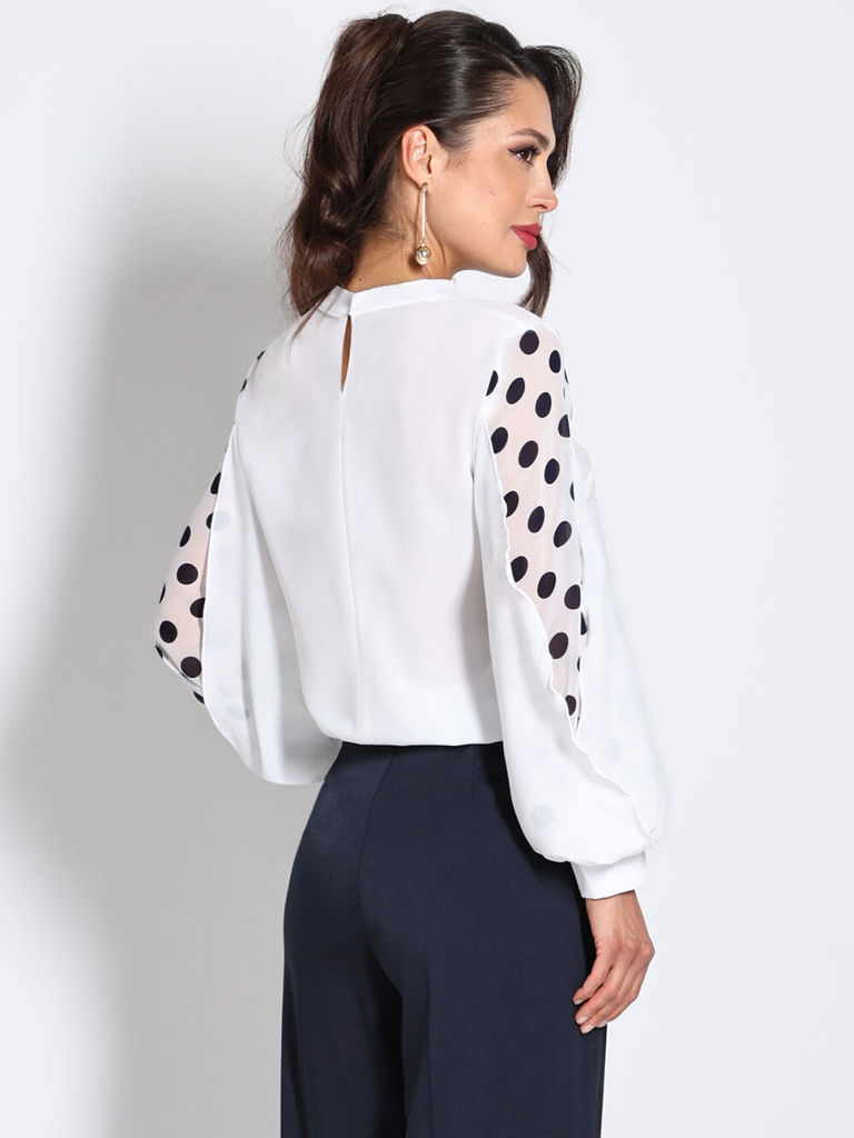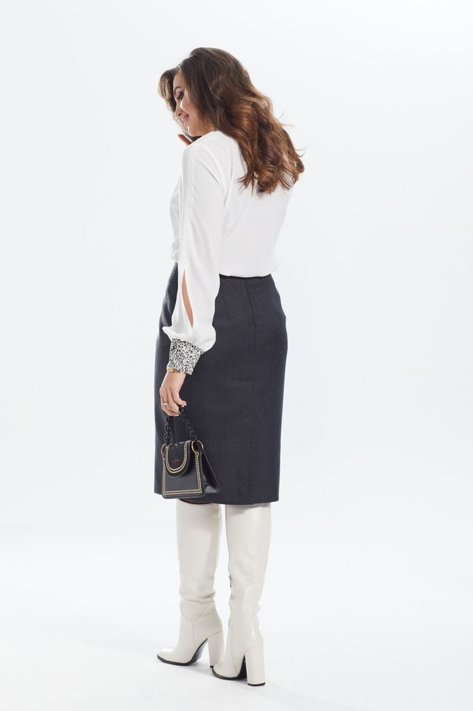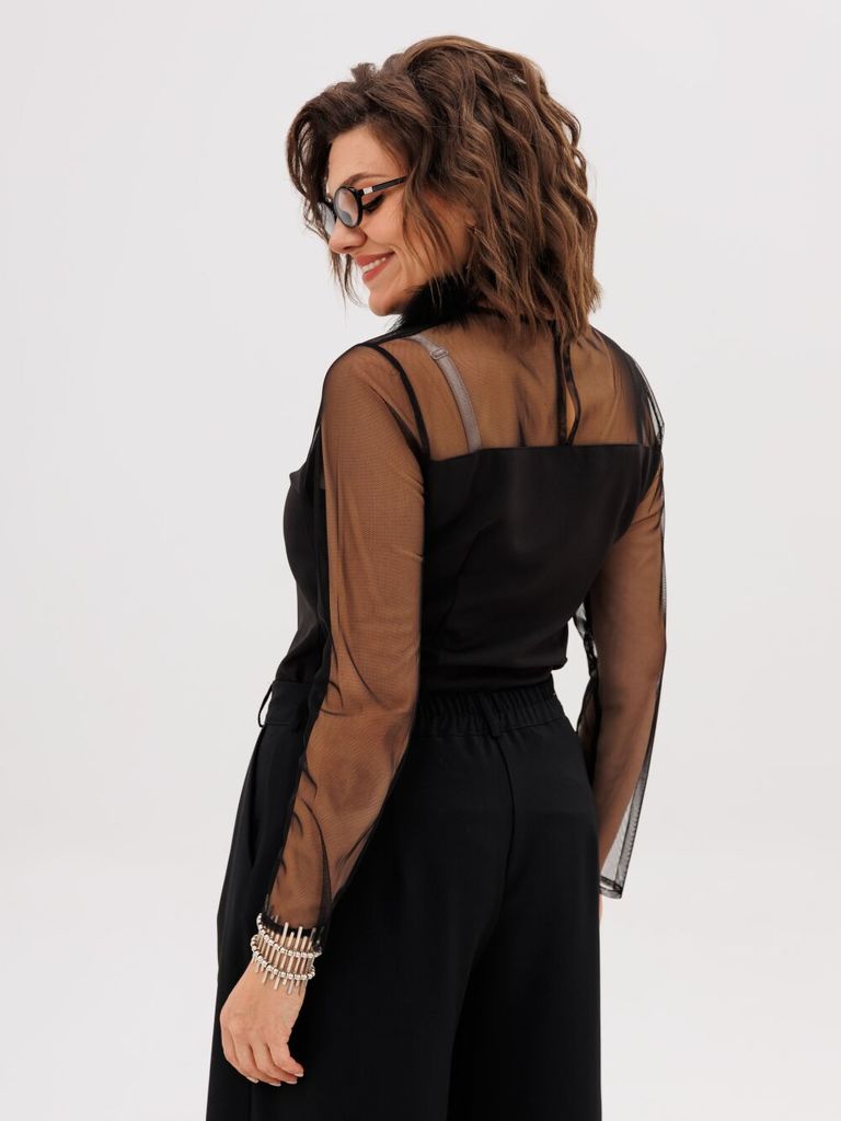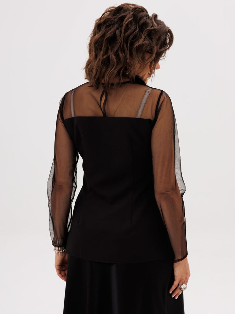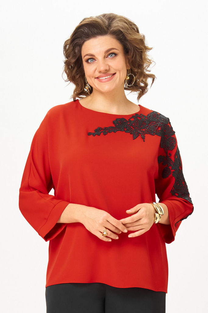 Состав: Блуза- Вискоза-40%; ПЭ-55%; Спандекс-5%; Сезон: Осень-Зима Рост: 164 Страна бренда: Беларусь Состав: Блуза: Вискоза-40%; ПЭ-55%; Спандекс-5%; Представляем вам элегантную блузу с пикантной нотк... Показать описаниеой, прилегающего силуэта с кокеткой и полупрозрачными рукавами, которая станет жемчужиной вашего гардероба. Она идеально сочетает в себе утонченность и легкую дерзость. Детали из сетки черного цвета и разрезы по бокам создают соблазнительную игру, формируя загадочный и невероятно притягательный образ. Потайная молния скрыта от посторонних глаз в боковом шве. Модель выполнена в классическом крое с круглым вырезом и длинными втачными рукавами — это делает ее универсальной основой для создания разных образов. Носите ее с брюками, джинсами или юбкой. Блуза сшита из эластичного материала, который не стесняет движений и комфортно сидит по фигуре. Это та самая вещь, которая поможет вам чувствовать себя уверенно и сексуально в любой ситуации. На модели собраны образы с юбкой 1291 и брюками 1442 от Анелли. Замеры: Размер 42: ОГ-86, ОТ-76, ОБ-92, ОП-30, ДИ-64, ДР-61; Размер 44: ОГ-90, ОТ-80, ОБ-96, ОП-32, ДИ-63, ДР-61; Размер 46: ОГ-96, ОТ-86, ОБ-102, ОП-34, ДИ-63, ДР-61; Размер 48: ОГ-100, ОТ-90, ОБ-106, ОП-36, ДИ-64, ДР-60; Размер 50: ОГ-104, ОТ-94, ОБ-110, ОП-36, ДИ-64, ДР-61; Размер 52: ОГ-108, ОТ-98, ОБ-114, ОП-37, ДИ-63, ДР-61.