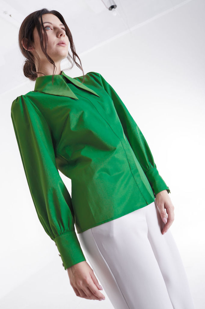 Состав: Хлопок-100%; Сезон: Осень-Зима Рост: 164 Страна бренда: Беларусь Состав: Хлопок-100%; Коллекция азиатских мотивов в современном прочтении. Эта блуза от Анелли— воплощение изысканной простоты и... Показать описание тонкой эстетики, где каждая деталь выверена и несет в себе глубокий смысл. Прямой силуэт, ниспадающий мягкими складками, обладает умиротворяющей гармонией и скрывает все лишнее, создавая идеальный контур. Выразительным акцентом служит элегантная стойка, подчеркивающая линию шеи и придающая образу собранность и утонченность. Спущенная линия плеча смягчает образ, добавляя ему непринужденной элегантности и художественного шарма. Лаконичный рукав три четверти открывает самое изящное место на запястье, делая жест более выразительным и грациозным. Неброская потайная застежка обеспечивает безупречно чистую линию полотна, сохраняя целостность замысла. А по бокам расположены деликатные разрезы, которые открываются при движении, позволяя ткани красиво колыхаться и добавляя динамики вашему шагу. Финальный штрих, превращающий вещь в настоящее искусство, — это воздушные бантики. Эта блуза — больше, чем просто предмет гардероба. Это высказывание. Она способна преобразить самый сдержанный лук, наполнив его смыслом, светом и безупречным вкусом. Она станет вашим тайным оружием, источником спокойной уверенности и неоспоримой привлекательности. Замеры: Размер 48: ОГ-113; ОТ-115; ОБ-118; ОП-40; ДИ-69; ДР-41; ШП-18; Размер 50: ОГ-117; ОТ-119; ОБ-123; ОП-42; ДИ-70; ДР-42; ШП-18; Размер 52: ОГ-122; ОТ-124; ОБ-128; ОП-44; ДИ-70; ДР-42; ШП-18,5; Размер 54: ОГ-126; ОТ-128; ОБ-132; ОП-46; ДИ-70; ДР-41; ШП-18,5; Размер 56: ОГ-130; ОТ-132; ОБ-136; ОП-48; ДИ-70; ДР-41; ШП-18,5; Размер 58: ОГ-134; ОТ-136; ОБ-140; ОП-48; ДИ-71; ДР-41; ШП-19,5; Размер 60: ОГ-138; ОТ-140; ОБ-144; ОП-50; ДИ-71; ДР-41; ШП-19,5.