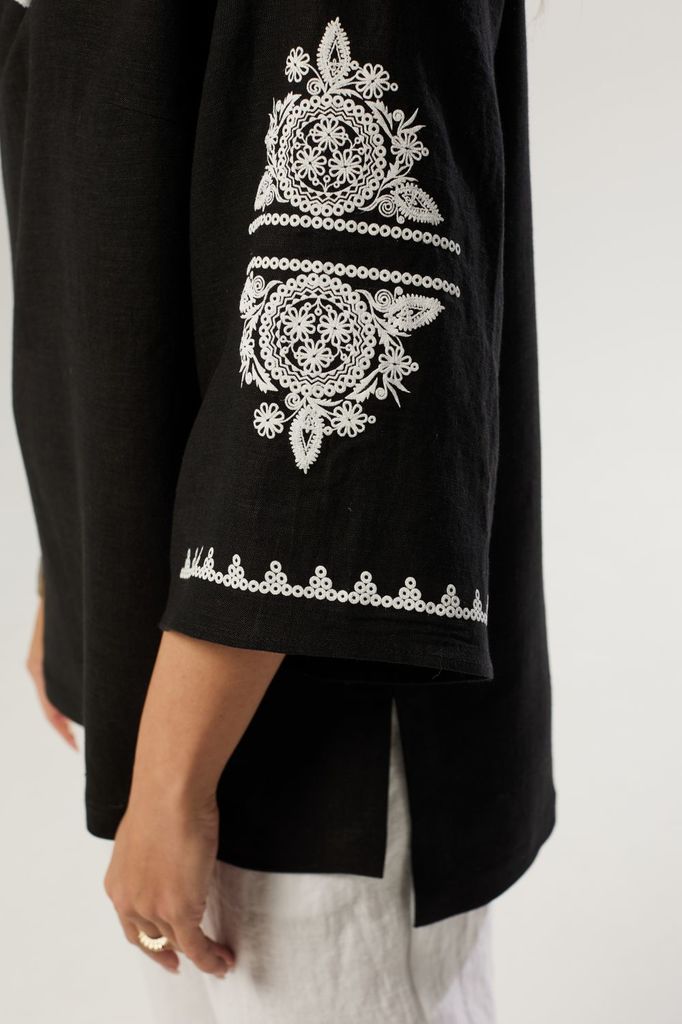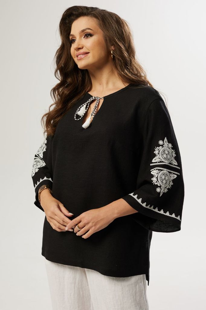 Состав: Вискоза-47%; Лён-53%; Сезон: Лето Рост: 170 Страна бренда: Беларусь Состав: Вискоза-47%; Лён-53%; Блузка свободного силуэта со спущенным плечом. Рукав свободный, расширенный к низу. Горловина ... Показать описаниекруглая с V-образным вырезом, украшенная декоративными завязками с кисточками. По бокам разрезы. На рукавах принт.