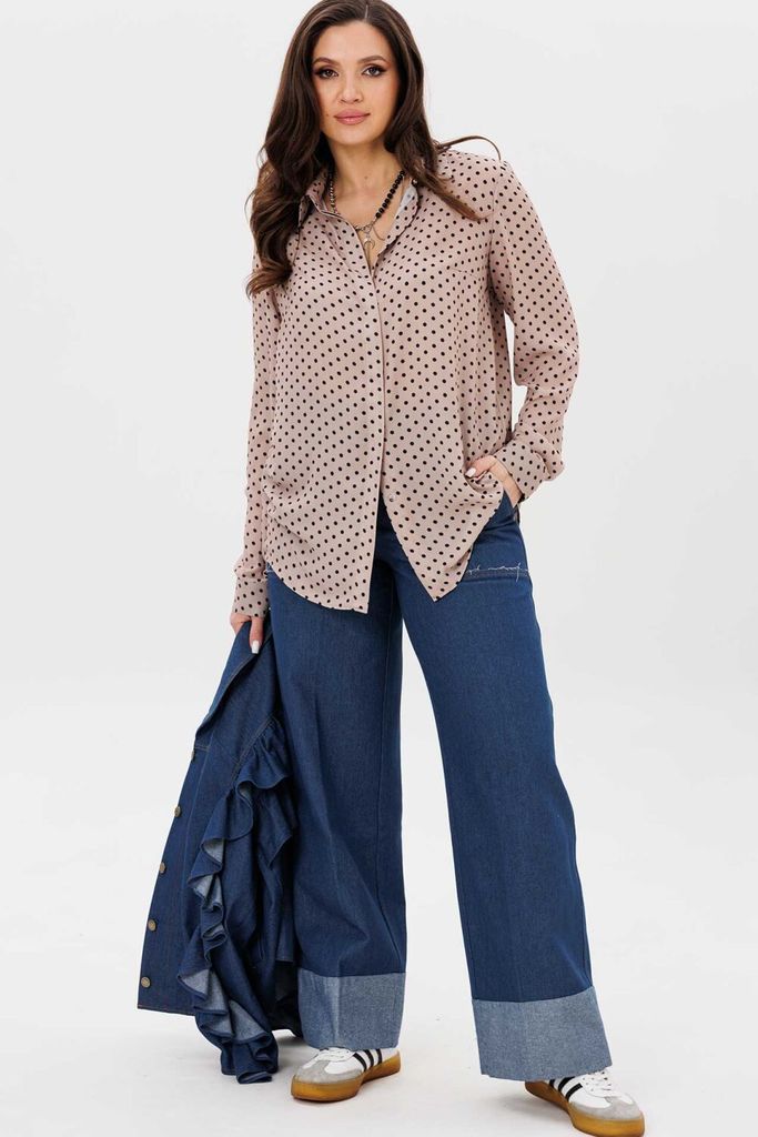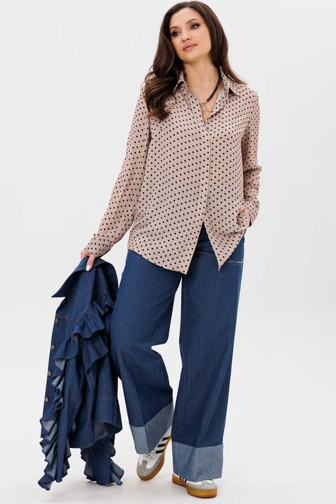 Состав: Вискоза-65%; ПЭ-32%; Спандекс-3%; Сезон: Осень-Зима Рост: 164 Страна бренда: Беларусь Состав: Вискоза-65%; ПЭ-32%; Спандекс-3%; Встречайте гармонию легкости и стиля. Эта блуза от Анелли — вопл... Показать описаниеощение идеальной повседневной элегантности, где каждая деталь создана для вашего комфорта. Ее свободный крой и мягкие спущенные плечи создают основу для невесомого силуэта. Глубокий V-образный вырез придает образу изысканность, а изящная кокетка добавляет художественный штрих. Рукав-кимано, собранный на резинке, мягко облегает запястье, предлагая вам варьировать его длину. Но главная тайна этой модели скрыта в ее сердце — эластичная резинка, проходящая по всему низу блузы. Эта деталь полностью меняет правила игры. Теперь вы сами становитесь творцом своего образа: укоротите блузу для дерзкого современного вида или отпустите ее для струящегося, романтичного силуэта. Она послушно следует за вашим желанием, подстраиваясь под настроение и ситуацию. Не просто удобная и красивая вещь на каждый день, а та самая основа гардероба, что понимает вас без слов. Блуза, которая помогает чувствовать себя неотразимой естественно и просто, превращая обычные моменты в проявление вашего безупречного вкуса. На модели образ с брюками 1737 от Анелли. Замеры: Размер 50: ОГ-116, ОБ-118, ОП-50, ДИ-63, ДР-28, ШП-28; Размер 52: ОГ-120, ОБ-122, ОП-52, ДИ-63, ДР-28, ШП-28; Размер 54: ОГ-124, ОБ-126, ОП-54, ДИ-65, ДР-26, ШП-30; Размер 56: ОГ-130, ОБ-132, ОП-56, ДИ-66, ДР-26, ШП-31; Размер 58: ОГ-134, ОБ-136, ОП-56, ДИ-66, ДР-25, ШП-32; Размер 60: ОГ-138, ОБ-140, ОП-56, ДИ-68, ДР-24, ШП-32; Размер 62: ОГ-142, ОБ-144, ОП-58, ДИ-68, ДР-22, ШП-33.