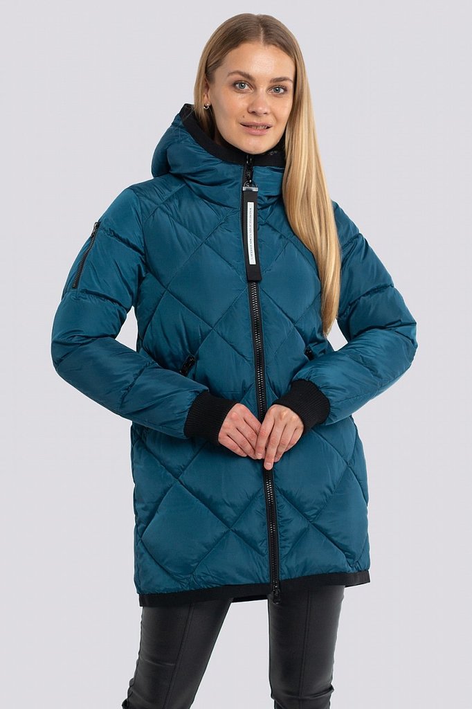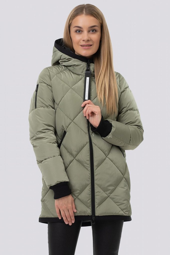 Универсальный хит –женская стеганая куртка с капюшоном из плотной плащевой ткани. Куртка прямого силуэта с ромбовидной стежкой на передней части изделия и фигурной стежкой на спинке. Центральная засте... Показать описаниежка на молнию, прорезные удобные карманы. Отделка трикотажной бейкой смотрится очень эффектно. В качестве утеплителя мягкий и практичный синтепух-синтетический пух. Температурный режим до -15.