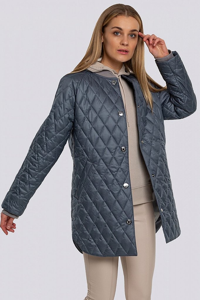 Для почитательниц удобства и практичности в одежде предлагаем модную куртку - бомбер из стеганой ткани. Модель удлиненная, подойдет на любую фигуру, на горловине и рукавах мягкий манжет. Особенности м... Показать описаниеодели: очень спокойные – «припыленные» цвета с контрастной отделкой, застежка на кнопки, карман застегивается на потайную кнопку, фигурная линия низа. Утеплитель – термофин, плотность 100.