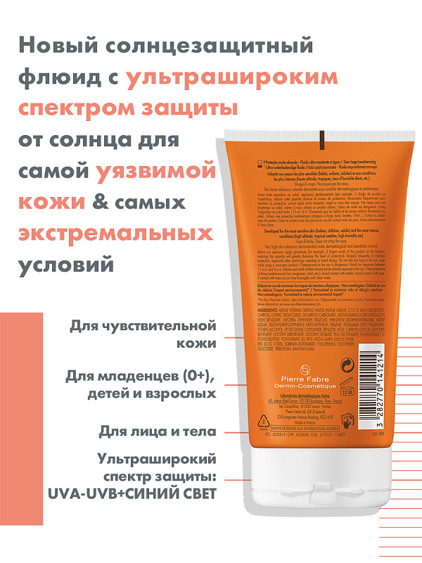 Первое солнцезащитное средство с ультра - широким спектром защиты: принципиально новый уровень фотопротекции благодаря инновационному комплексу TriaSorb ТМ - гарантирующий защиту от самого широкого сп... Показать описаниеектра излучения (UVA-UVB-BLUE LIGHT HEV) Флюид для интенсивной защиты разработан специально для условий чрезмерной инсоляции – например: высокогорье, тропический климат, высокая влажность и т.д. Для лица и тела. Для мужчин и женщин. Для детей с 3 лет