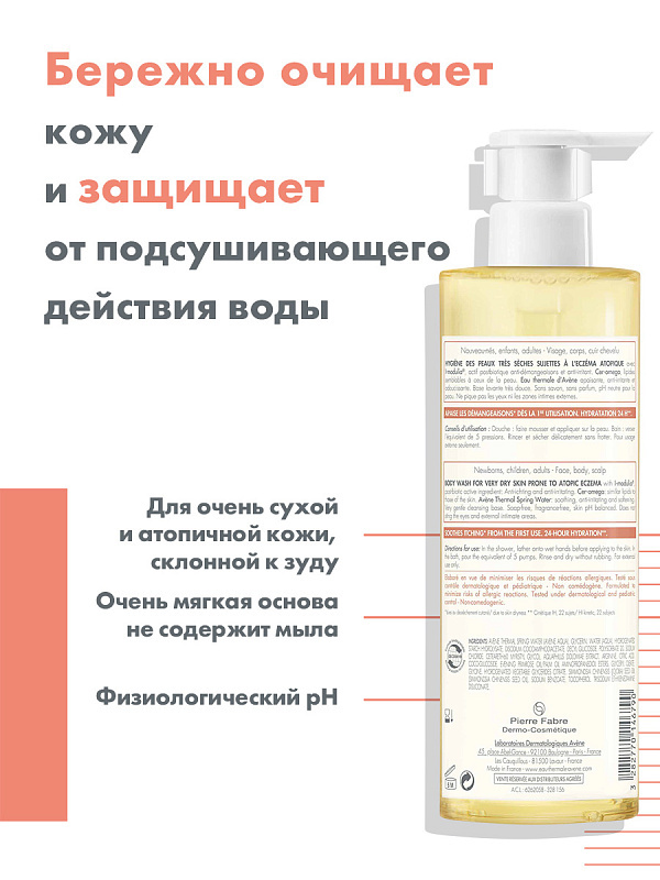 Формула липидовосполняющего масла XeraCalm A.D. была специально разработана для сухой кожи младенцев, детей и взрослых с использованием минимума компонентов. Комплекс I-modulia снижает зуд и сухость к... Показать описаниеожи, а также успокаивает раздражения и покраснения, вызванные гиперреактивностью кожи. Комплекс липидов Cer-Omega сохраняет естественный липидный баланс кожи. Термальная вода Avene обладает успокаивающими и увлажняющими свойствами. Не щиплет глаза и не раздражает внешние слизистые оболочки. Гипоаллергенно. Без отдушек и консервантов. Для сухой кожи младенцев, детей и взрослых